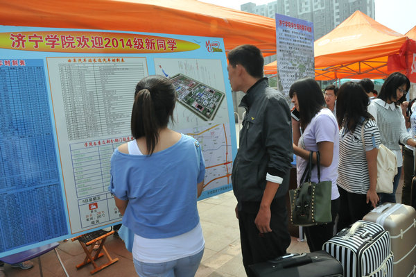 9月6日清晨,全体工作人员都纷纷到达了各自岗位,投入到紧张有序而又充满期待的迎新工作中。学校分别在兖州火车站、曲阜火车站、曲阜汽车站和曲阜高铁车站设立了接待点,校车不间断迎接新生和家长,第一时间迎接来自各地的新同学,保证新生安全、简便、准确、有序地到校报名。志愿者热情为学生及家长介绍新生入学、家长返回乘车等有关事宜,并提供后续服务。在校内,设置了家长返回等车服务区,图书馆内新生报到临时休息区,使得学生和家长可以临时休息,查看时刻表和公交路线。所有工作人员视新生和家长如亲人,热情服务,周到细致。真正做到了让新生满意,让家长放心。