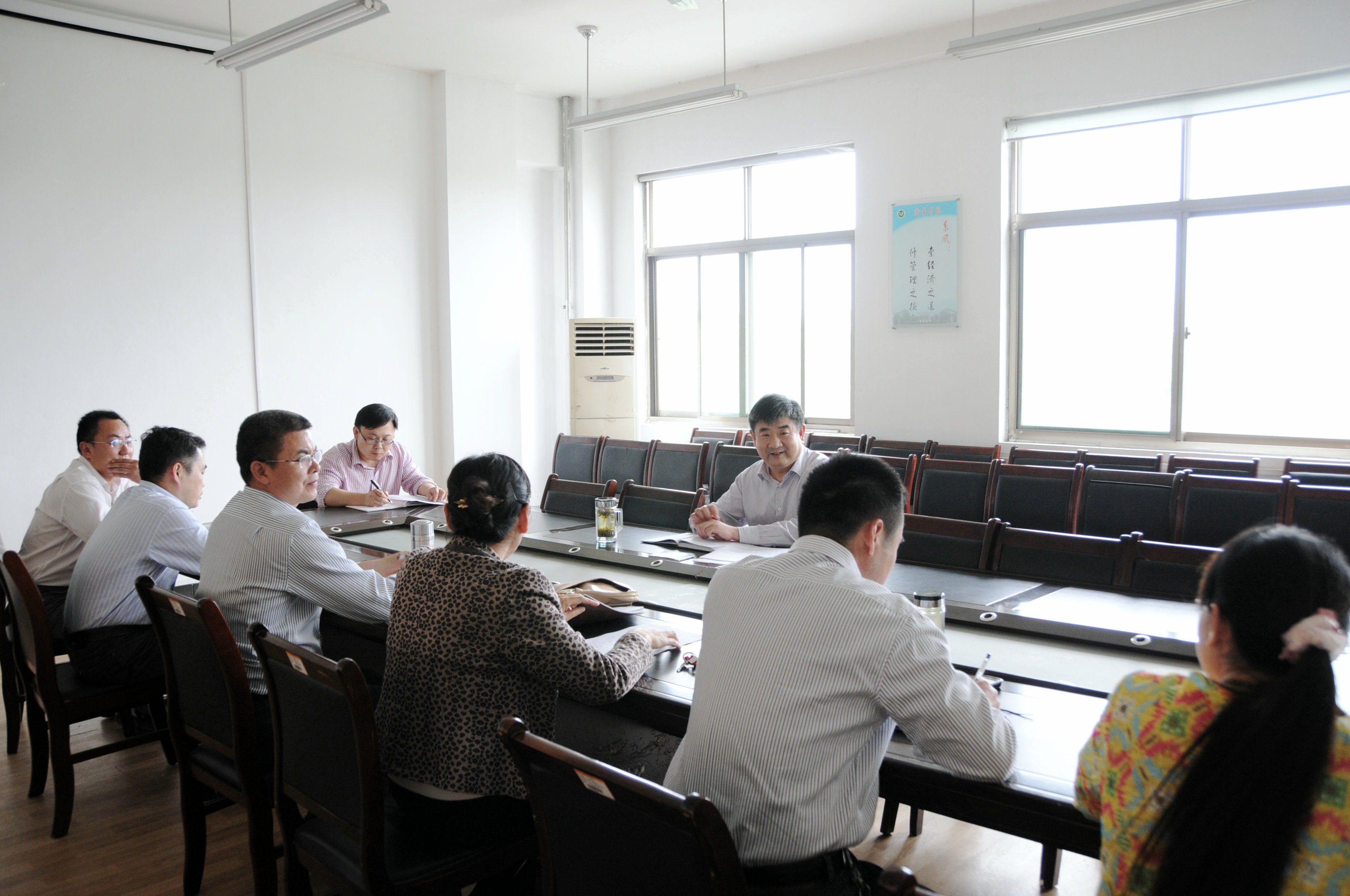 5月13日、16日,校党委书记郁章玉分别到经济管理系、信息管理中心调研。郁书记听取了两个单位负责人对本单位基本情况、主题大讨论活动开展情况的汇报,认真听取了教师对学校提出的意见和建议,并进行了亲切交流。