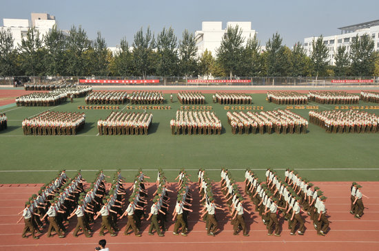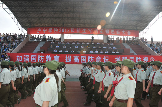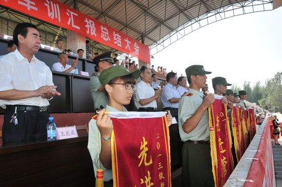 9月18日上午,2013级新生军训汇报总结大会在东田径场举行。校党委书记王应进,党委副书记、院长吕灵昌,党委副书记谢安庆,党委委员、副院长王庆成、刘德胜、朱松涛,党委委员、纪委书记许记中,中国人民解放军 71770 部队中校刘朝福出席大会。大会由谢安庆主持。