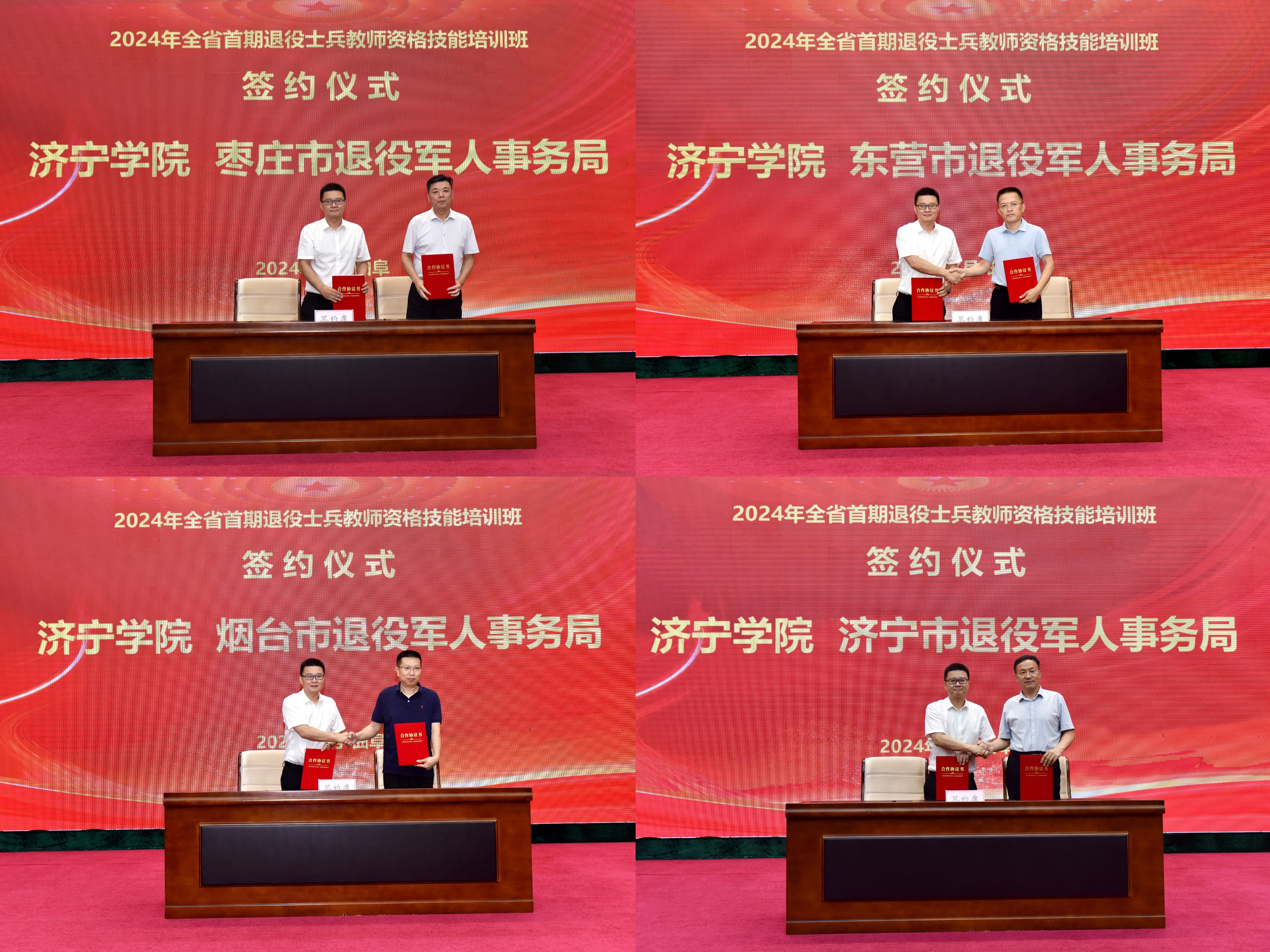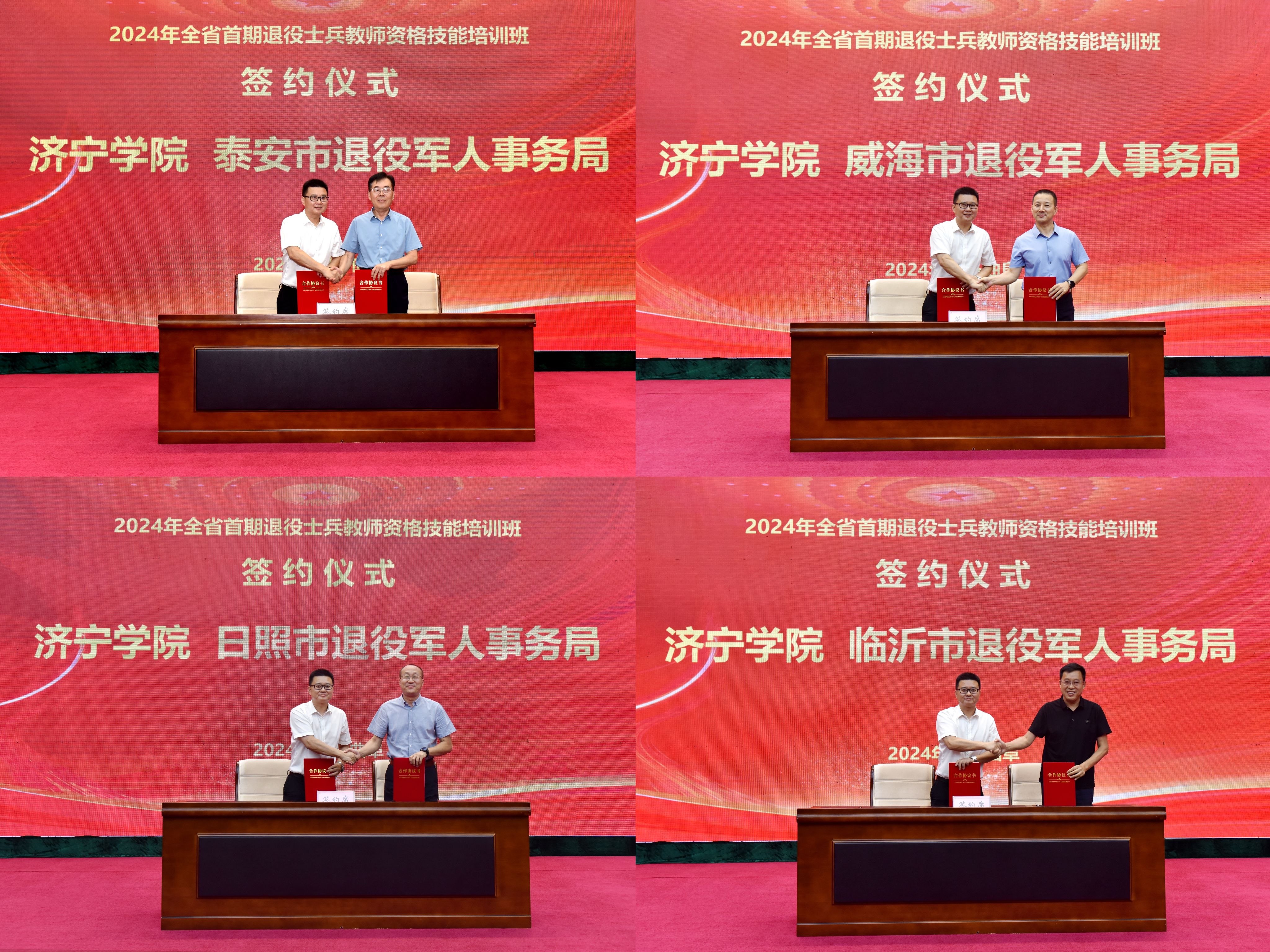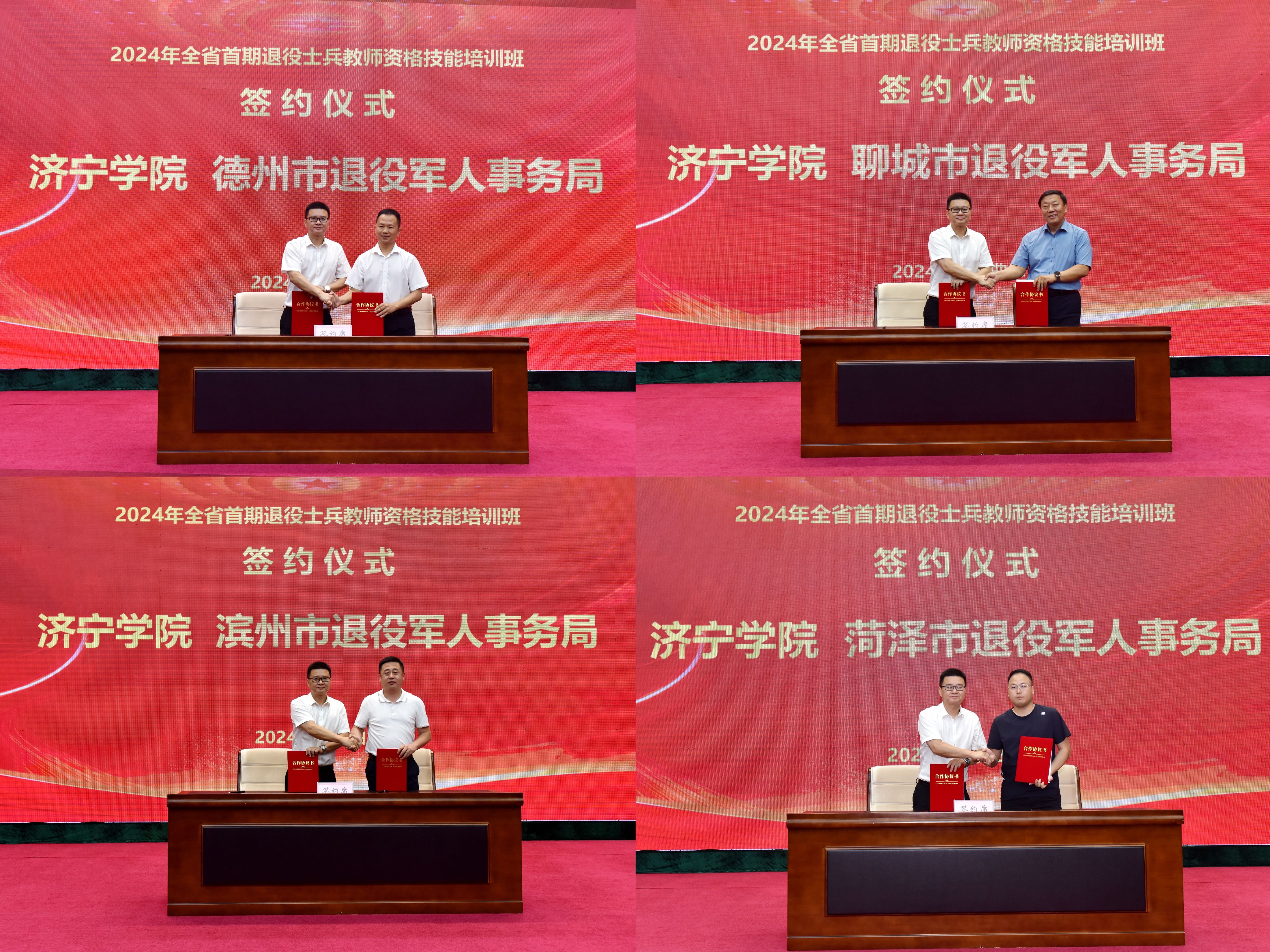 刘国栋代表学校分别与全省12个地市退役军人事务局签署了《山东省首期退役士兵教师资格技能培训合同》。