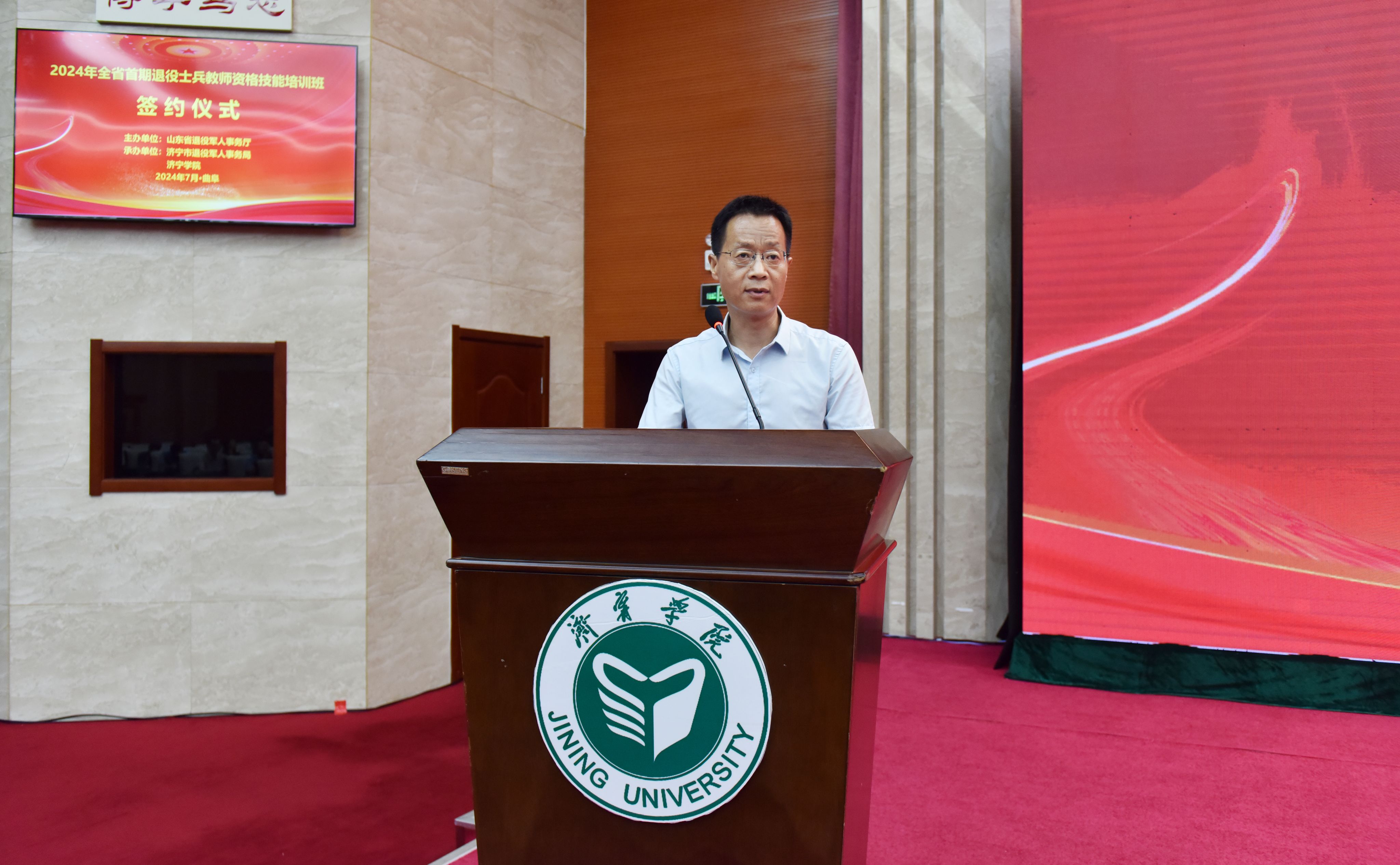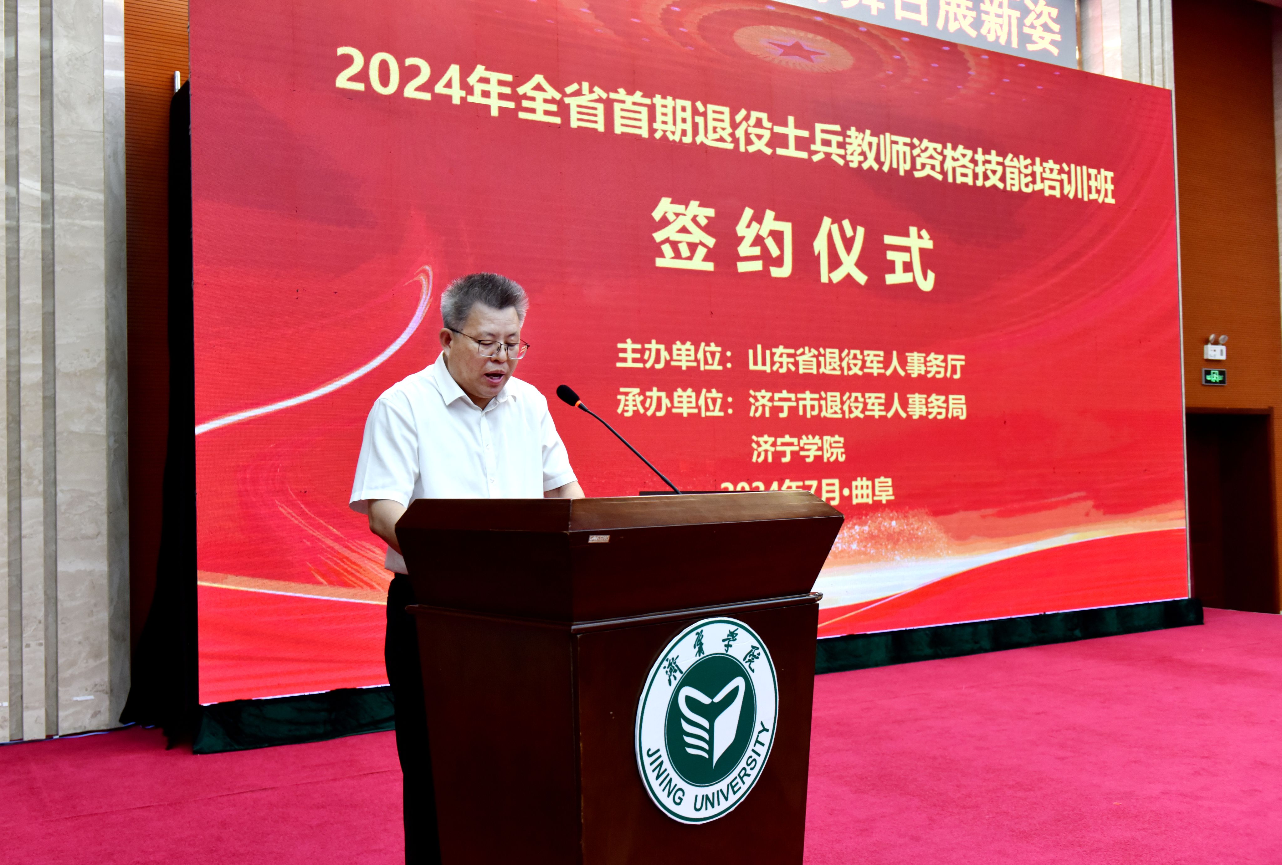 7月14日下午,2024年山东省首期退役士兵教师资格技能培训班签约仪式在我校举行。山东省退役军人事务厅就业创业处处长王秀正,校党委书记杨天梅,副校长刘国栋及全省各地市退役军人事务局分管领导出席签约仪式,仪式由教育培训学院院长徐俊凯主持。