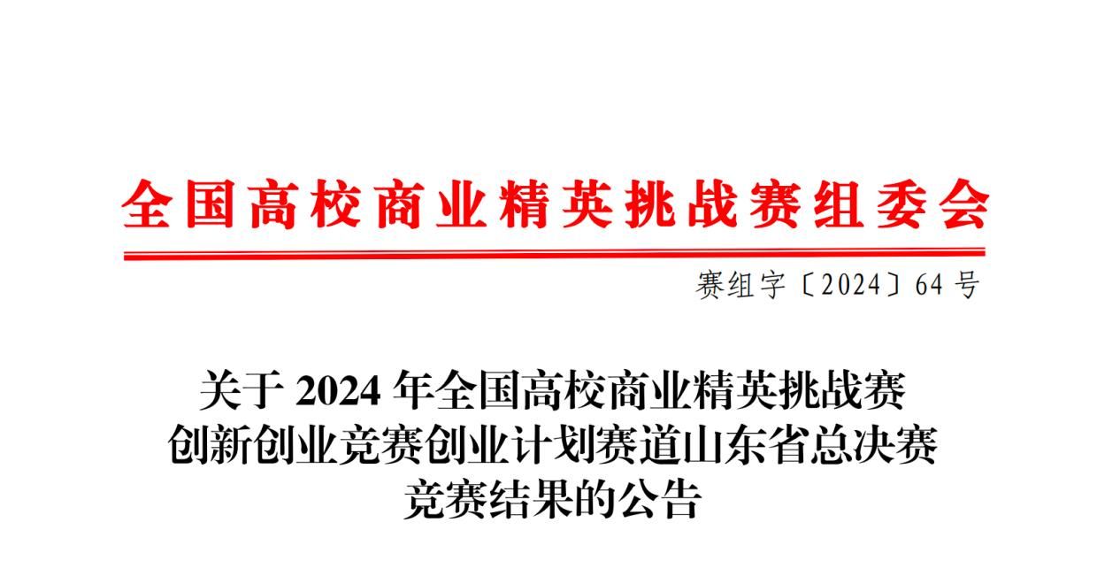 近日,由中国国际贸易促进委员会商业行业委员会、中国国际商会商业行业商会和中国商业经济学会联合主办2024 年全国高校商业精英挑战赛创新创业竞赛创业计划赛道山东省总决赛落下帷幕。经过山东省预选赛、山东省总决赛的激烈角逐,来自全省 66 所院校的 428 支队伍入围山东省总决赛参赛。我校经济管理学院共遴选4支代表队参赛,斩获省级一等奖1项、二等奖2项,三等奖1项,获得一等奖的团队入围国赛决赛。