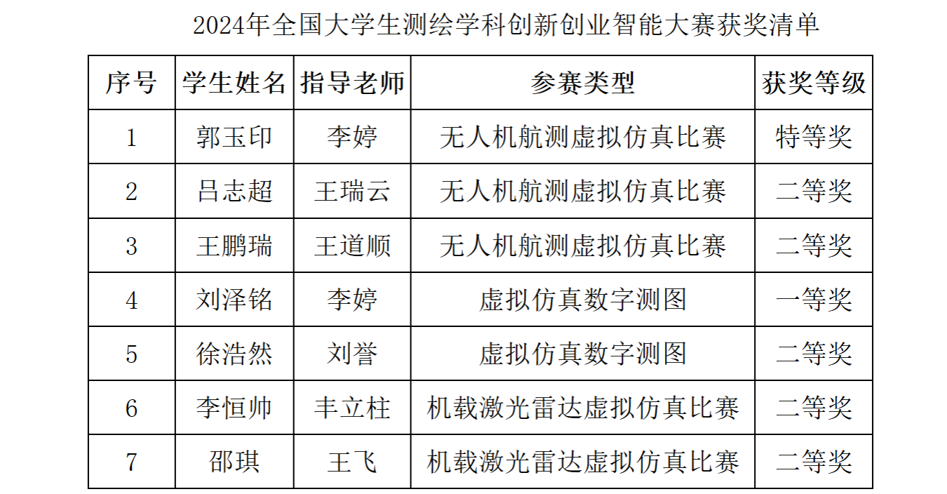 本次大赛是进入“《2023全国普通高校大学生竞赛分析报告》竞赛目录”后的第二届比赛,也是全国大学生展示测绘科技创新的最高级别赛事,共有来自全国的360多所高校参赛,参赛学生规模近8000人,赛事规模和影响力创历届大赛新高。大赛共有三个赛项,包括测绘技能竞赛、开发设计竞赛和科技论文竞赛,采用选手线上参赛,评委线下评审的方式进行。据统计,测绘技能竞赛有5530组参加,其中虚拟仿真数字测图1720组、测绘程序设计744组,无人机航测虚拟仿真1596组,机载激光雷达虚拟仿真1470组;开发设计竞赛共计232组参赛,其中创新开发80组,创新设计69组,创业计划83组;科技论文竞赛共有426篇论文进入网评。资源环境与安全工程学院代表我校首次参加比赛,共获得特等奖1项、一等奖1项、二等奖5项。