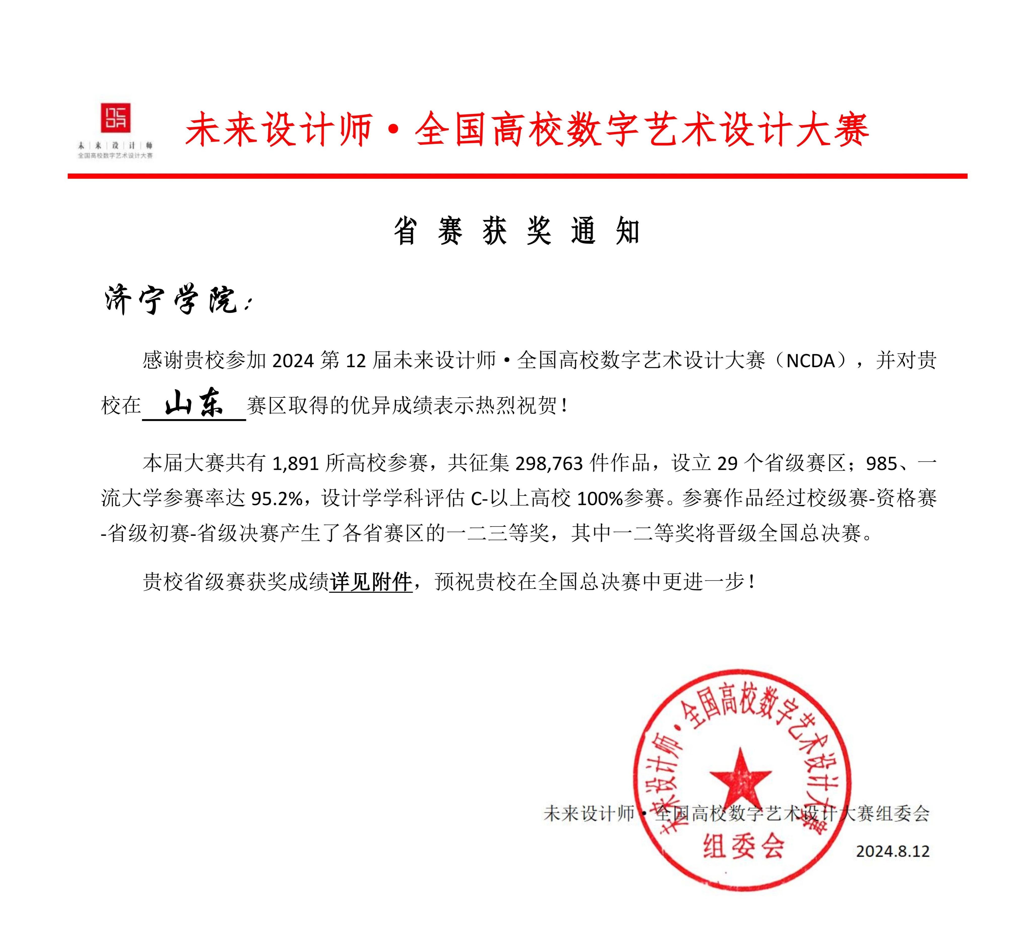 近日,“第十二届未来设计师·全国高校数字艺术设计大赛(NCDA)”获奖揭晓,我校美术学院师生参赛作品共斩获全国一等奖2项、二等奖1项、三等奖1项,省级一等奖6项、二等奖10项、三等奖11项的佳绩。