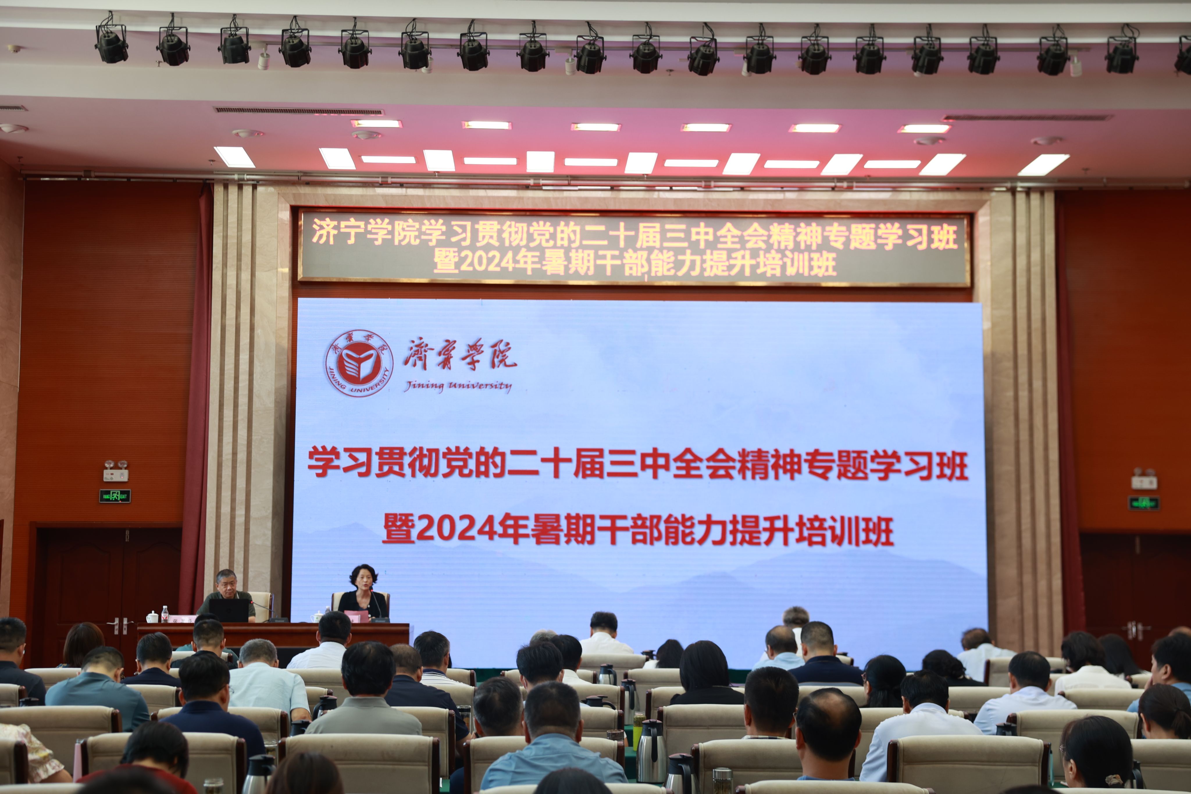 为深入学习贯彻党的二十届三中全会精神和习近平总书记视察山东重要讲话精神,进一步加强学校干部队伍建设,提升广大干部综合素质和能力,推动学校事业高质量发展,8月3日至8月30日,学校举办学习贯彻党的二十届三中全会精神专题学习班暨2024年暑期干部能力提升培训班。学校党委书记杨天梅主持学习班动员会并作动员讲话。学校领导班子成员、处级干部、二级学院学术副院长及院长助理、二级学院团委书记(副书记)、各党支部书记参加培训。
