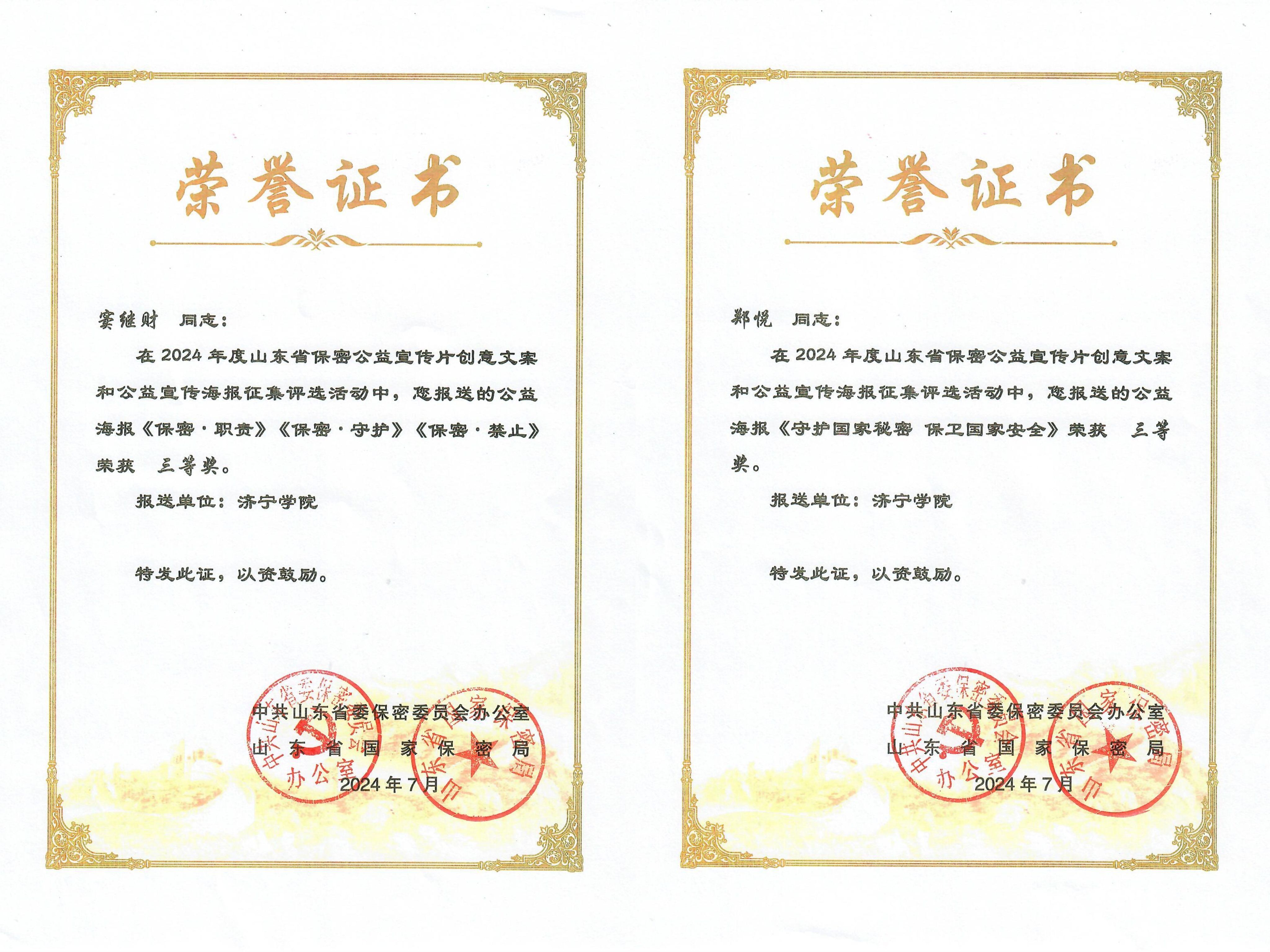 为做好保密宣传和保密教育,加强新修订保密法学习宣传贯彻,增强师生保密观念,提升全民保密法治意识,根据上级有关文件要求,我校积极组织参加2024年度保密公益宣传片创意文案和保密公益宣传海报征集活动,共向上级部门报送25件作品。其中,我校美术学院报送的《保密·职责》《保密·守护》《保密·禁止》和马克思主义学院报送的《守护国家秘密 保卫国家安全》分获三等奖。