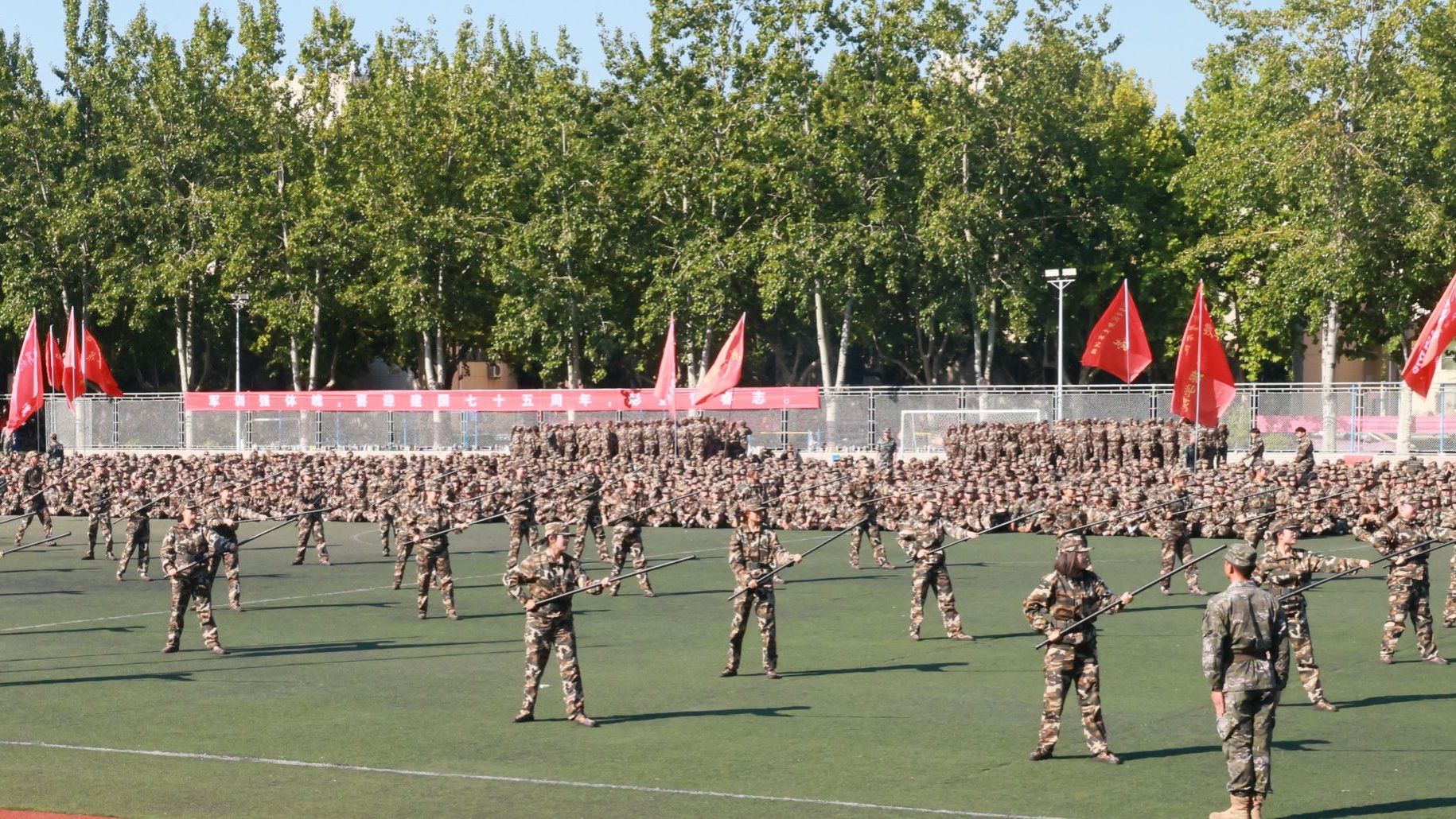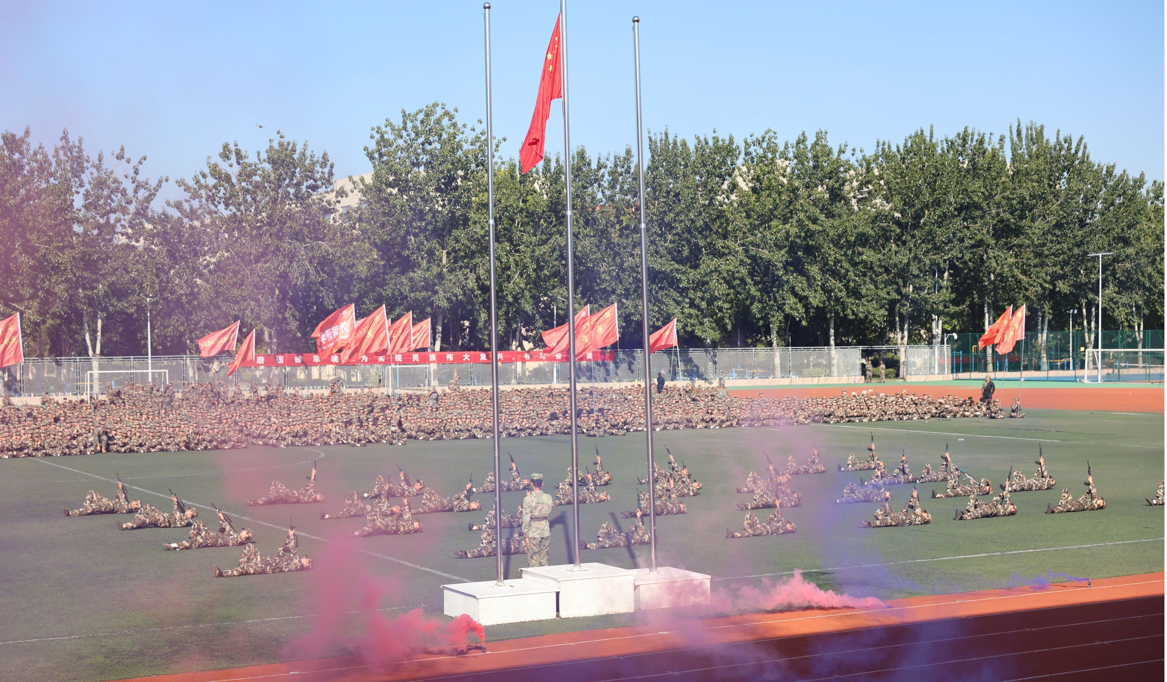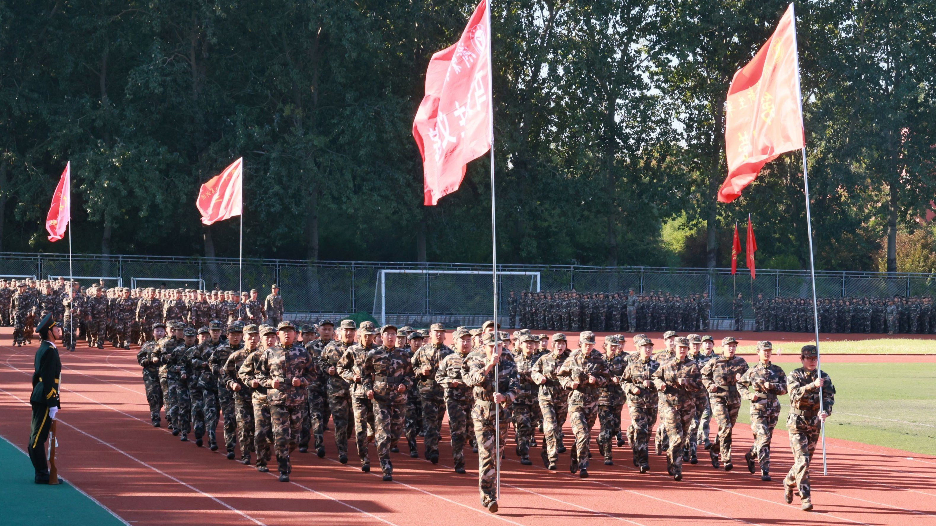 大会在庄严的国歌声中拉开序幕。队列会操部分,各方队步伐整齐,口号响亮,军容严整,尽显飒爽英姿;方阵展示部分,擒敌拳、应急棍、匕首操、刺杀操表演,动作整齐划一,气势恢宏;战术演练部分,穿越火线、匍匐前进,开展擒拿格斗、战伤救治等“实战化、情景式”综合战术演练。全体参训学生以昂扬的斗志和饱满的热情圆满展示了训练成果,精彩表现赢得阵阵掌声。