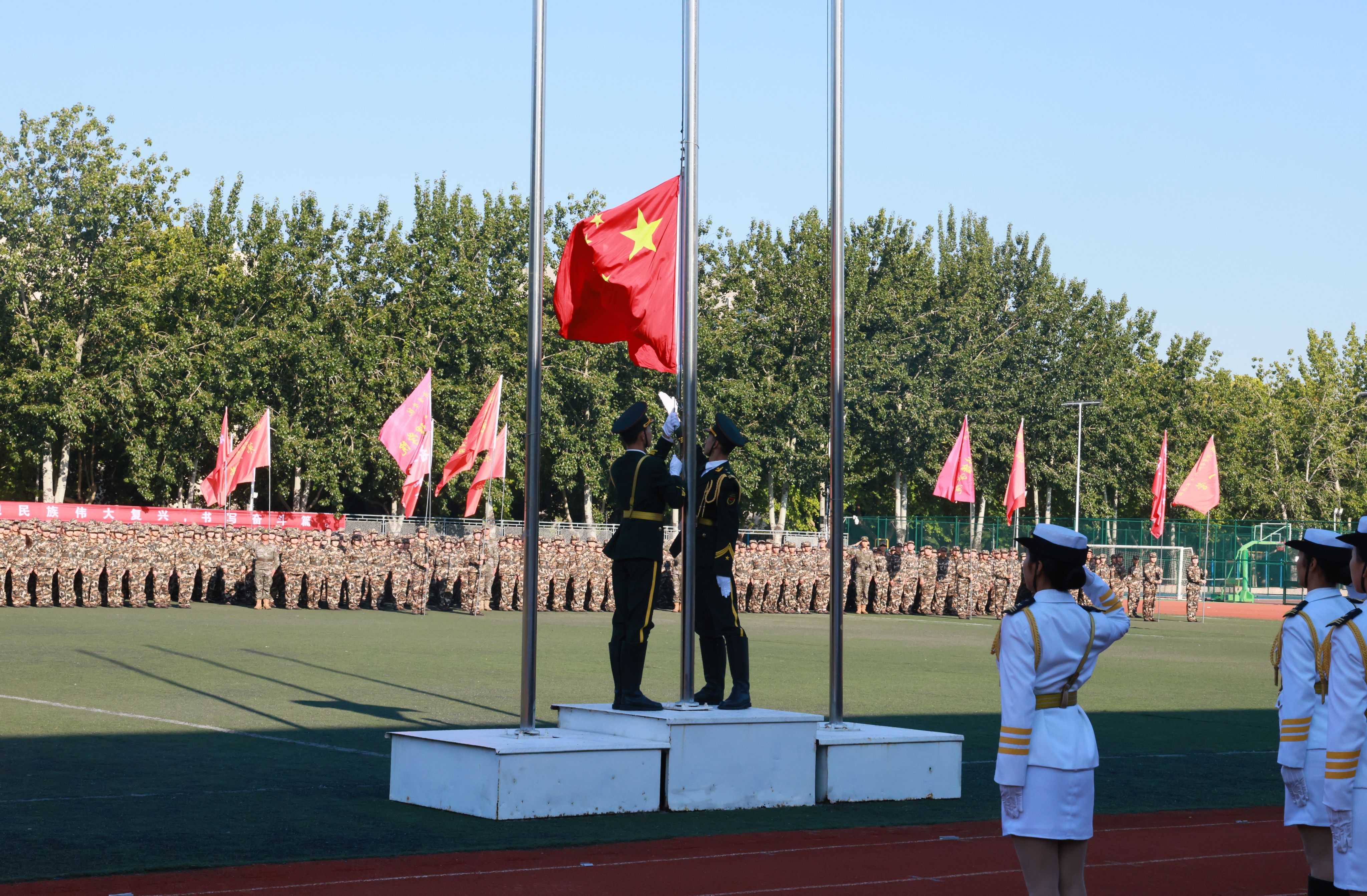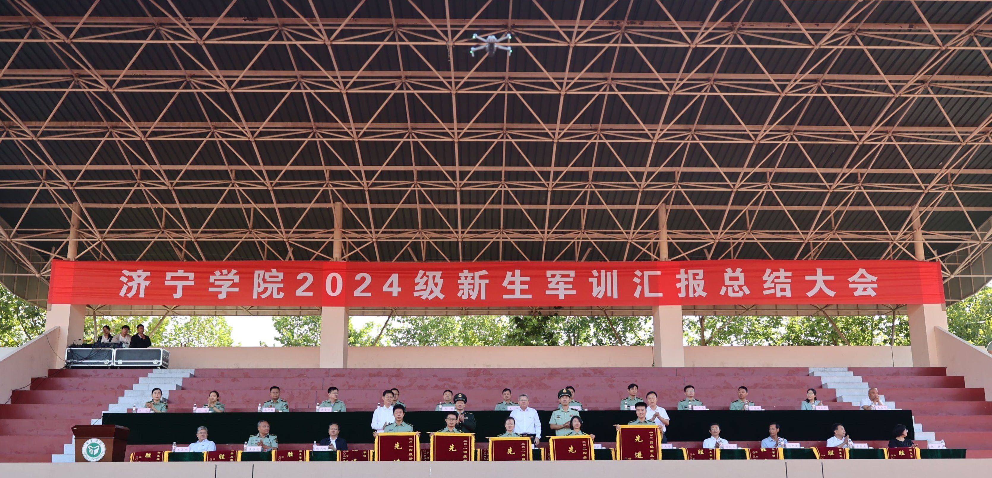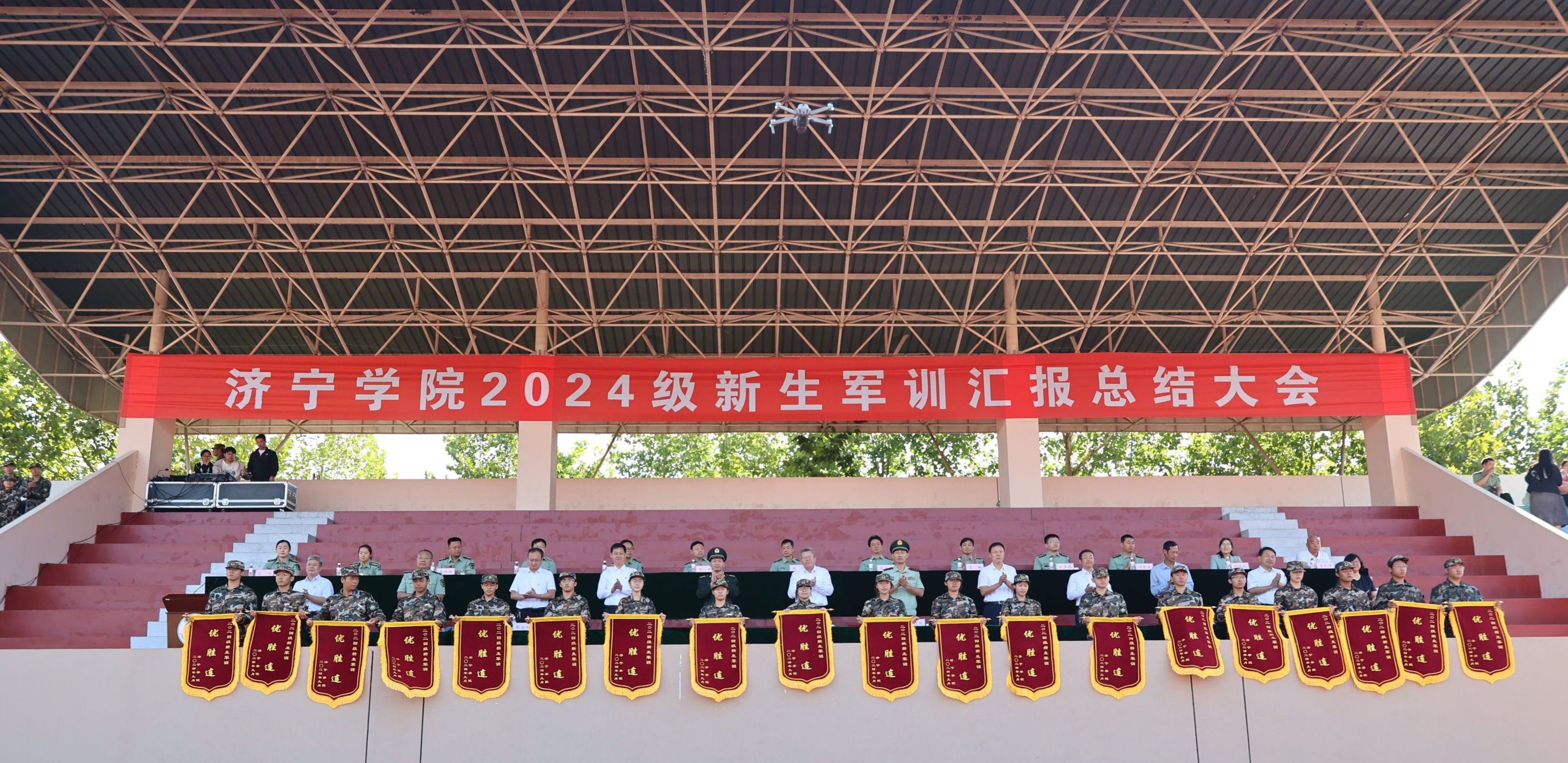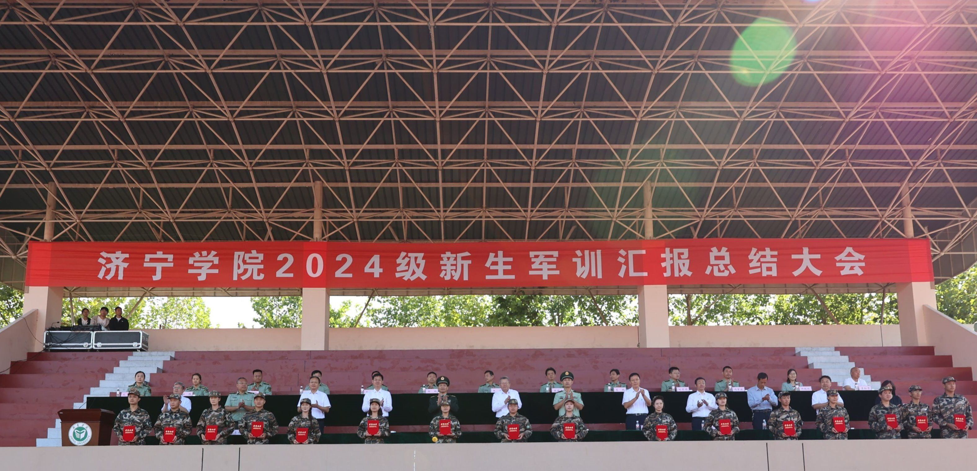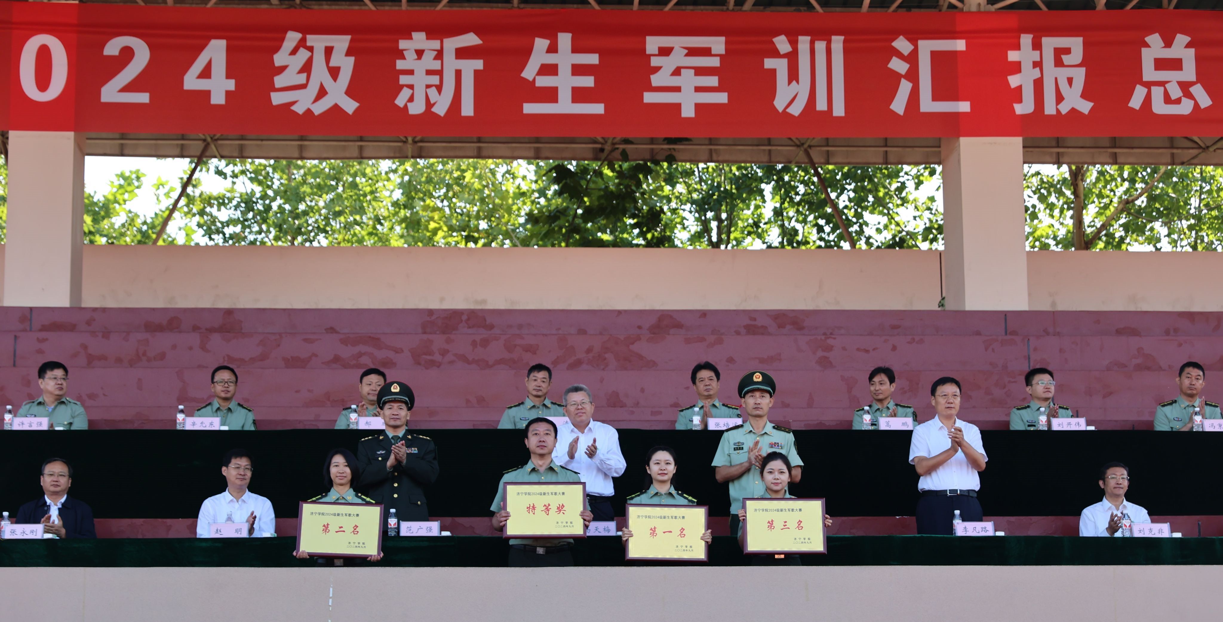 9月22日上午,学校2024级新生军训汇报总结大会在东操场隆重举行。校党委书记杨天梅,武警济宁支队领导张明兴,曲阜市委常委、人民武装部部长范广强,校党委委员、副校长李凡路、赵明,校党委委员、宣传部部长刘克非出席大会。