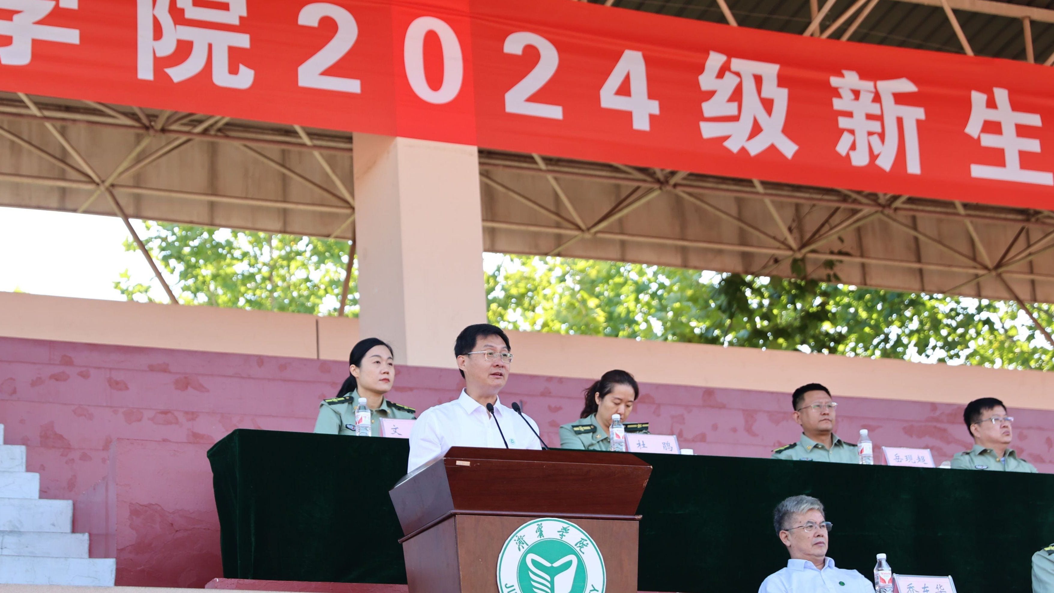 党委(院长)办公室、学生工作处、教务处、后勤管理与基建处、安全保卫处、校团委等部门和二级学院党委有关负责同志,承训部队官兵、新生辅导员以及2024级全体参训学生参加了大会。