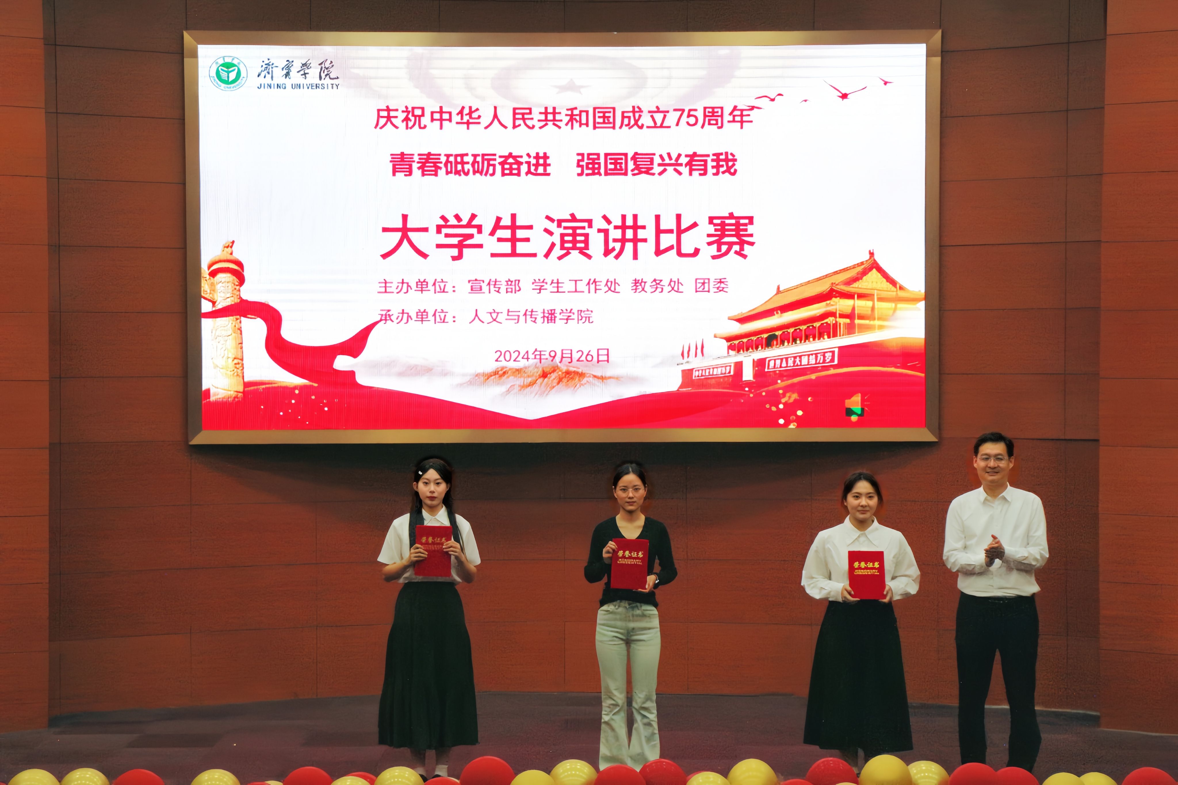 9月26日下午,由学校党委宣传部、学生工作处、教务处、团委主办,人文与传播学院承办的庆祝中华人民共和国成立75周年“青春砥砺奋进 强国复兴有我”大学生演讲比赛在理科楼报告厅举行。校党委委员、副校长赵明出席,党委宣传部、学生工作处、人文与传播学院相关负责人参加。
