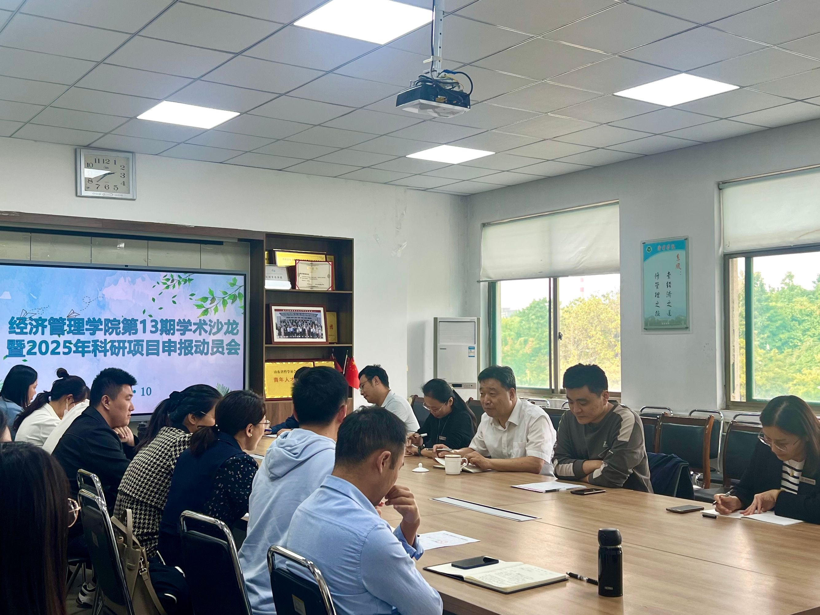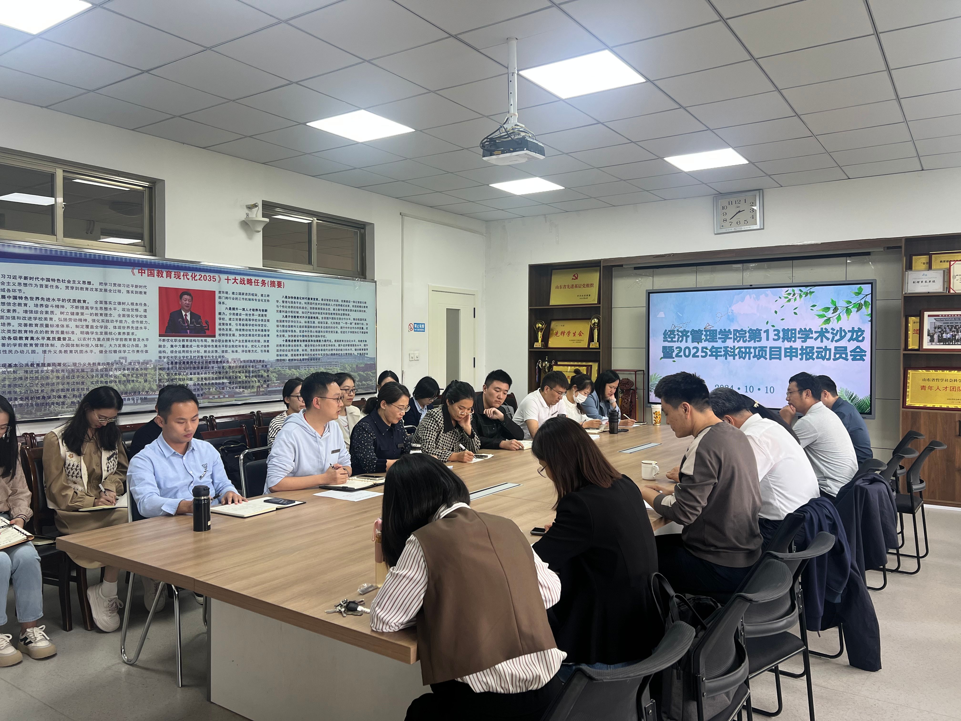 为持续深化经济管理学院“学术沙龙”协作科研氛围,加强有组织科研,助力学院科研高质量发展,10月10日下午,经济管理学院举办第十三期“博士沙龙”暨2025年科研项目申报动员会。校党委副书记、校长王清明参加活动并讲话,学院青年博士、新进青年教师参加动员会,会议由学院学术副院长李伟主持。