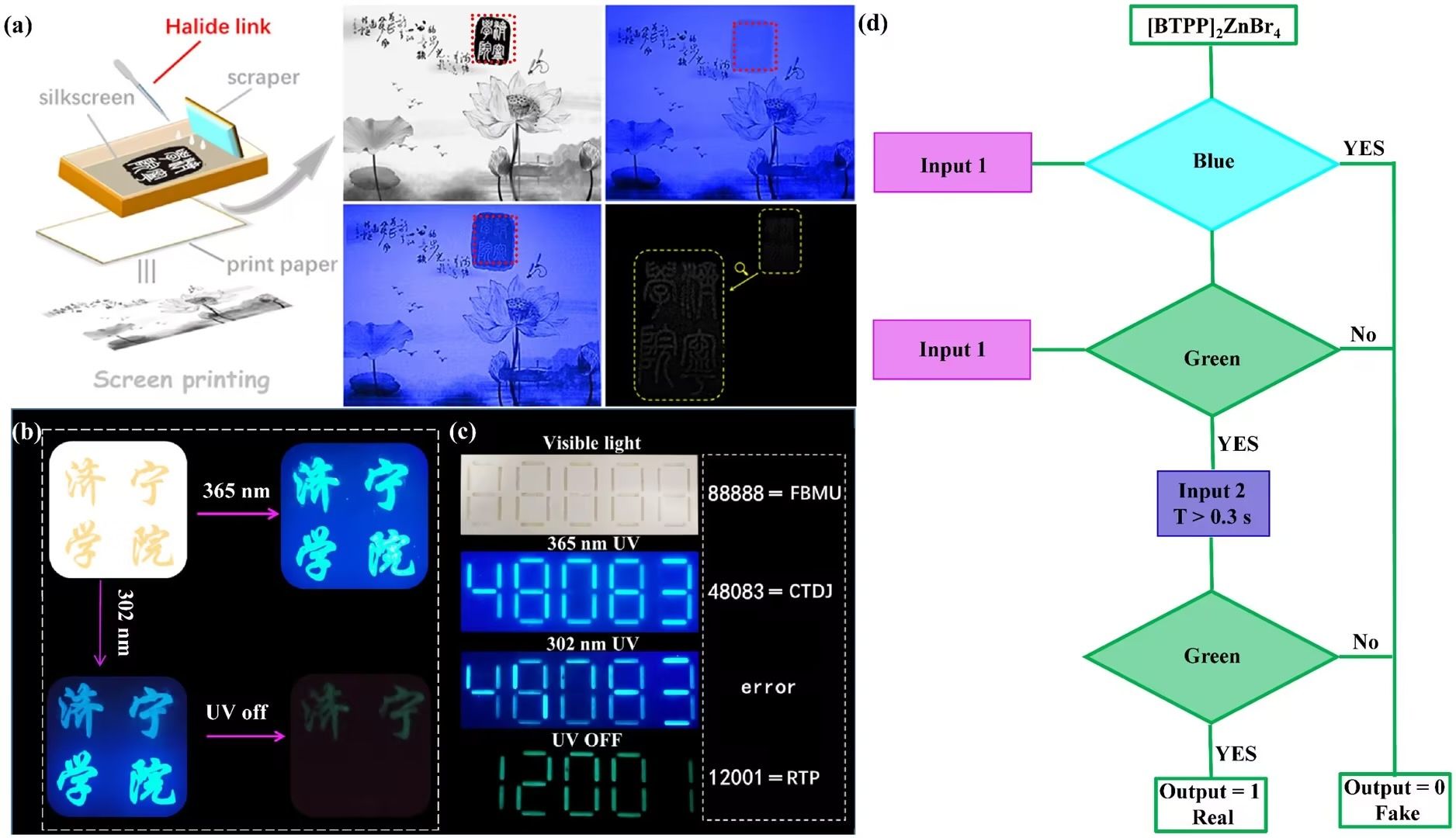 图1. [BTPP]2ZnBr4材料在多功能时间分辨防伪和信息安全中的应用