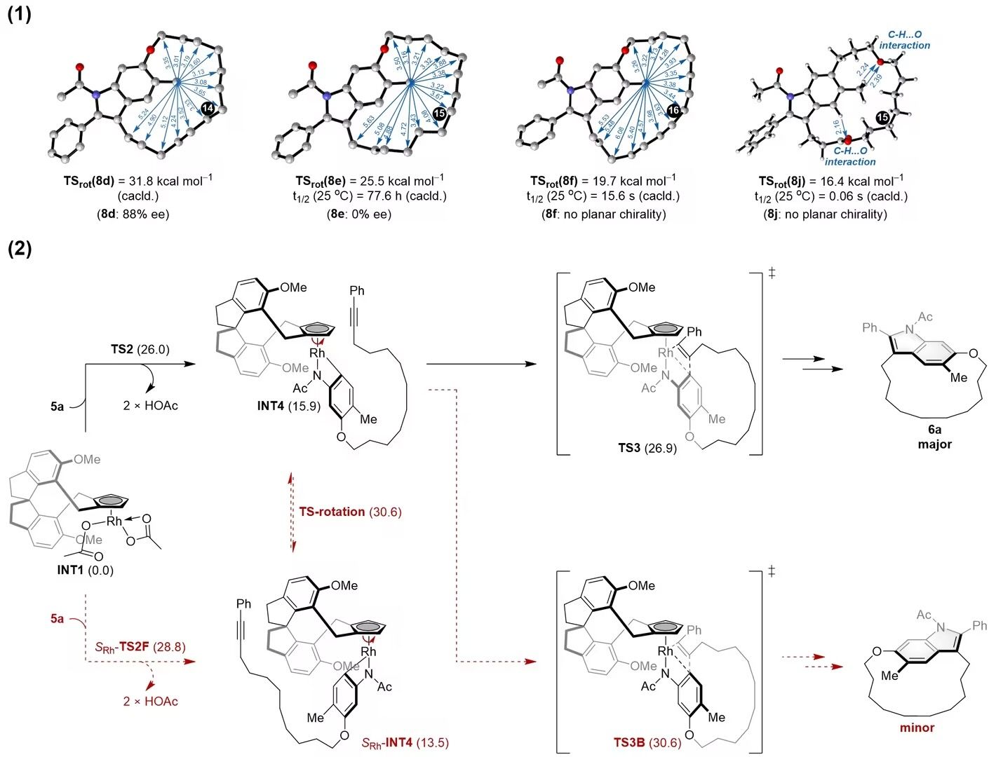 图2. 平面手性大环构象稳定性及反应对映选择性的DFT研究