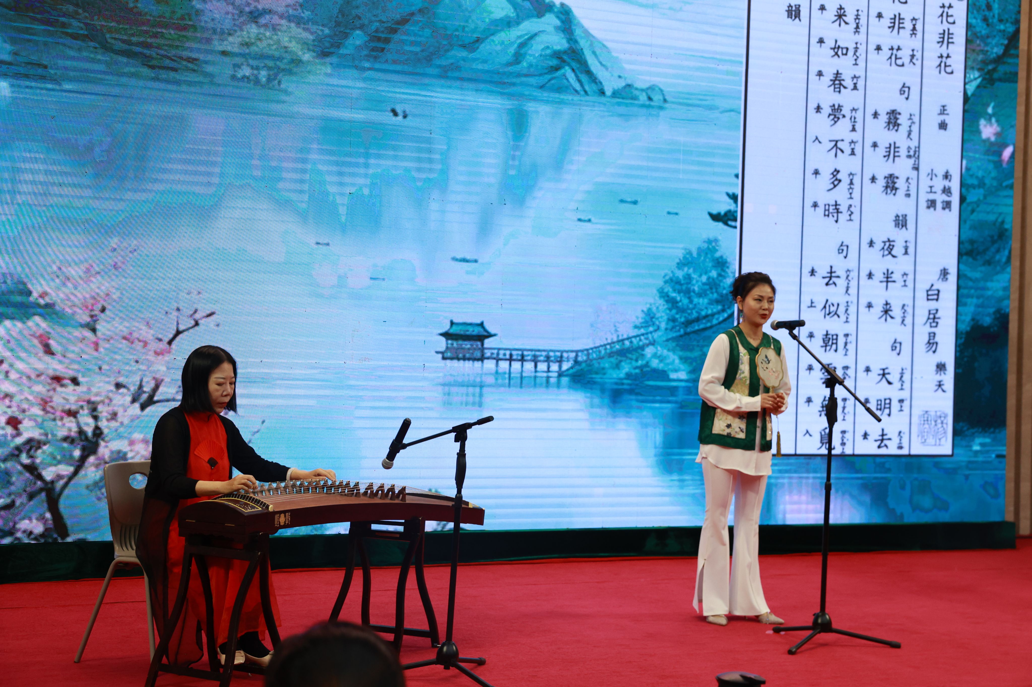 比赛现场,音乐学院教师李亚囡演唱、郝晓虹演奏的曲目《花非花》、马克思主义学院青年教师合唱的歌曲《天地龙鳞》烘托了比赛氛围。