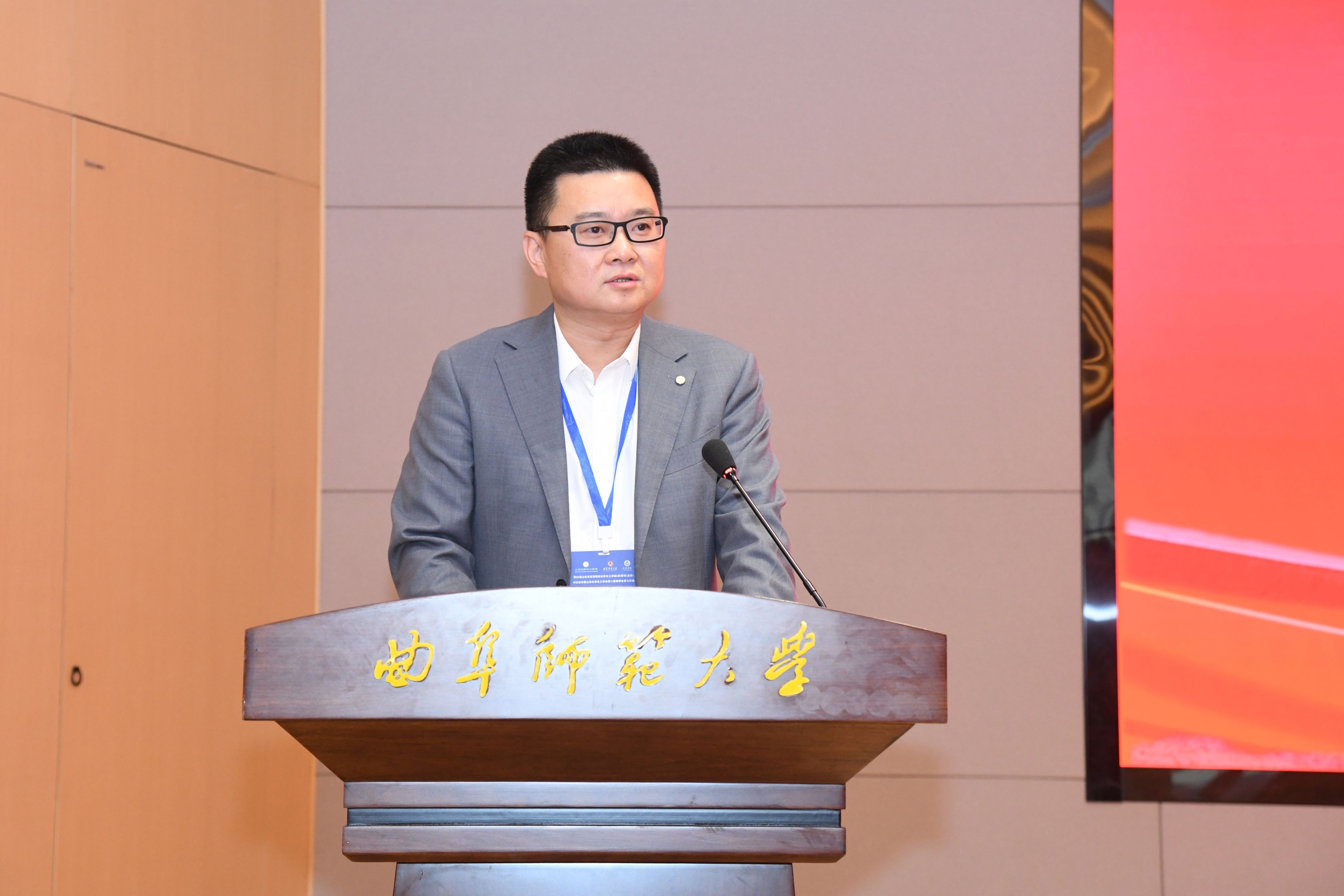 曲阜师范大学副校长胡凡刚致辞,山东化学化工学会秘书长刘宝胜代表山东化学化工学会第八届理事会做工作报告,山东师范大学、中国石油大学(华东)书记、院长代表致辞。
