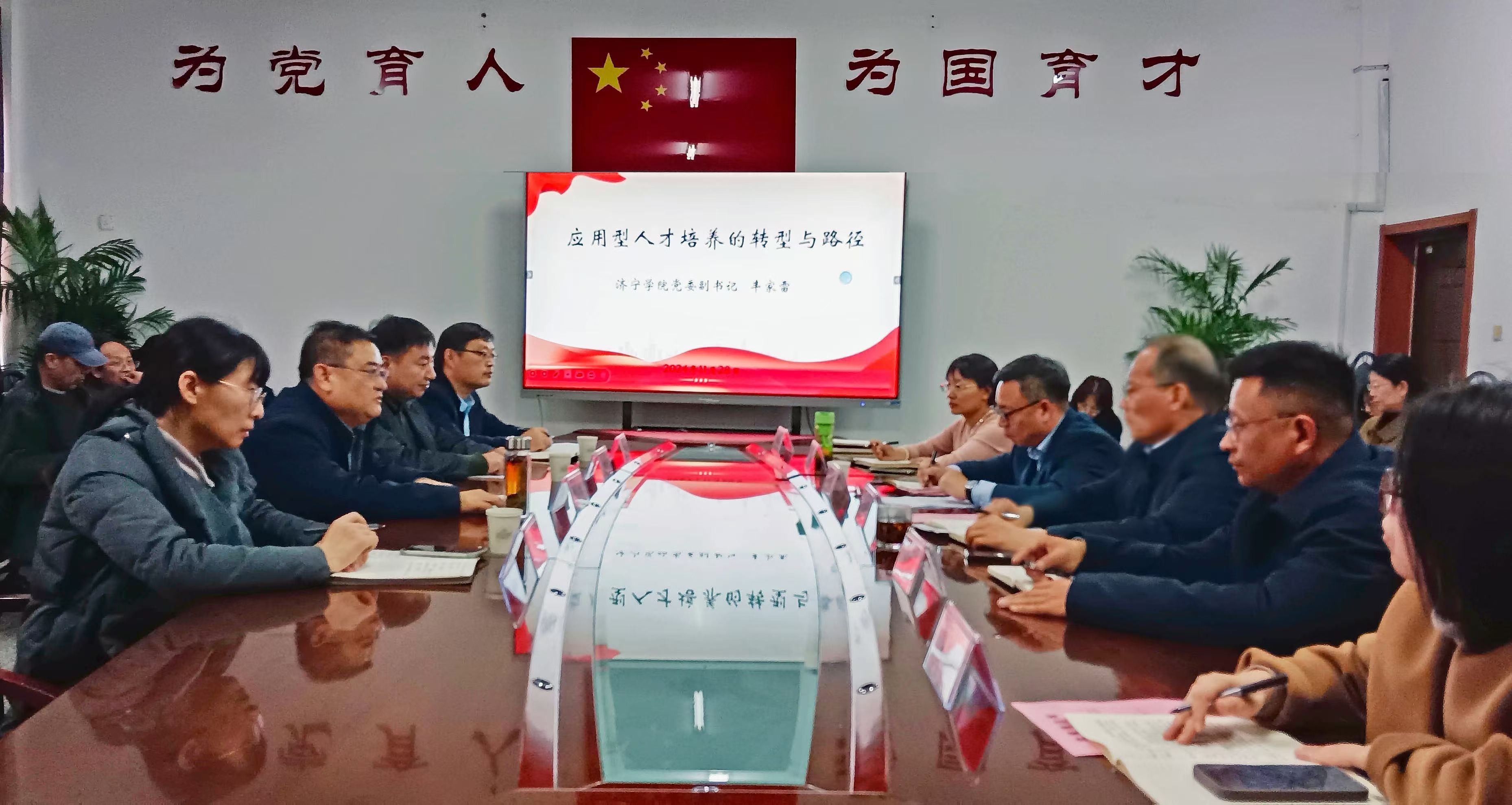 在人文与传播学院,他强调了文化传承与创新的重要性,并做了《应用型人才培养的转型与路径》的报告。鼓励学院与济宁能源发展集团在企业文化建设、品牌传播等方面开展合作,提升企业的文化软实力。