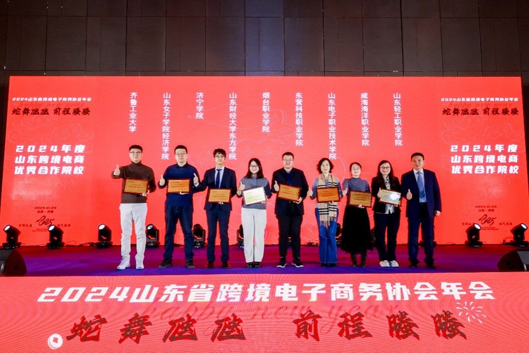 1月9日,山东省跨境电子商务协会第二届第四次理事会暨2024年度年会在济南隆重举行。我校作为协会理事单位受邀出席此次活动。此次年会吸引了众多行业精英,山东省商务厅副厅长王红、省跨境电商协会会长秦长岭,以及来自跨境电商领域的诸多知名专家、学者和企业代表齐聚一堂,共同探讨行业发展趋势,分享经验与见解。