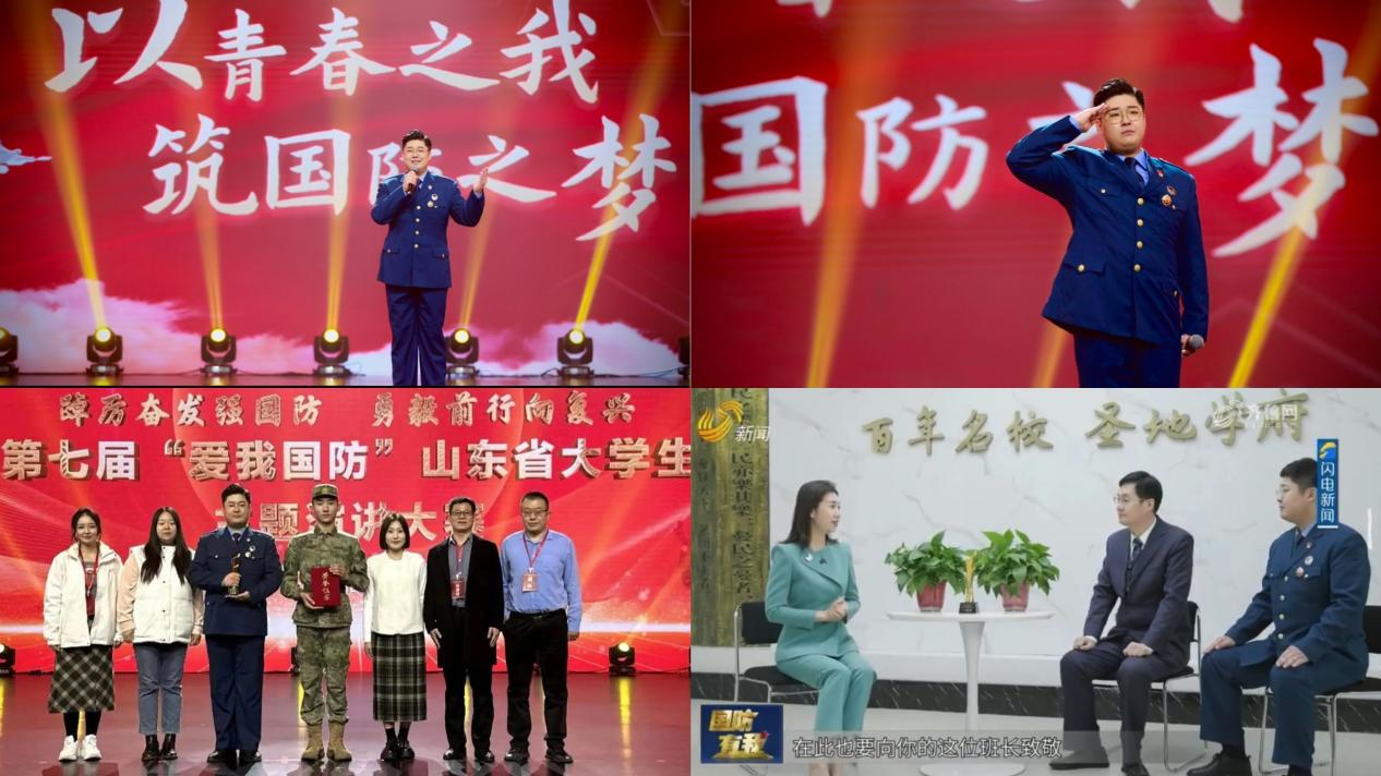 作为一名学生党员,他积极参加各类比赛、宣讲活动。先后荣获2023年山东省防震减灾诗文诵读大赛二等奖,2024年山东省中华经典诵读大赛大学生组一等奖,2024年山东省第七届“爱我国防”大学生主题演讲大赛一等奖第一名,并被多家媒体报道,为学校赢得了荣誉。作为亚星在线登录官网全国大学生“两弹一星”精神志愿宣讲团成员,一年来开展宣讲20余次,用宣讲力量传递爱国声音,展现出济园学子青春爱国风貌。