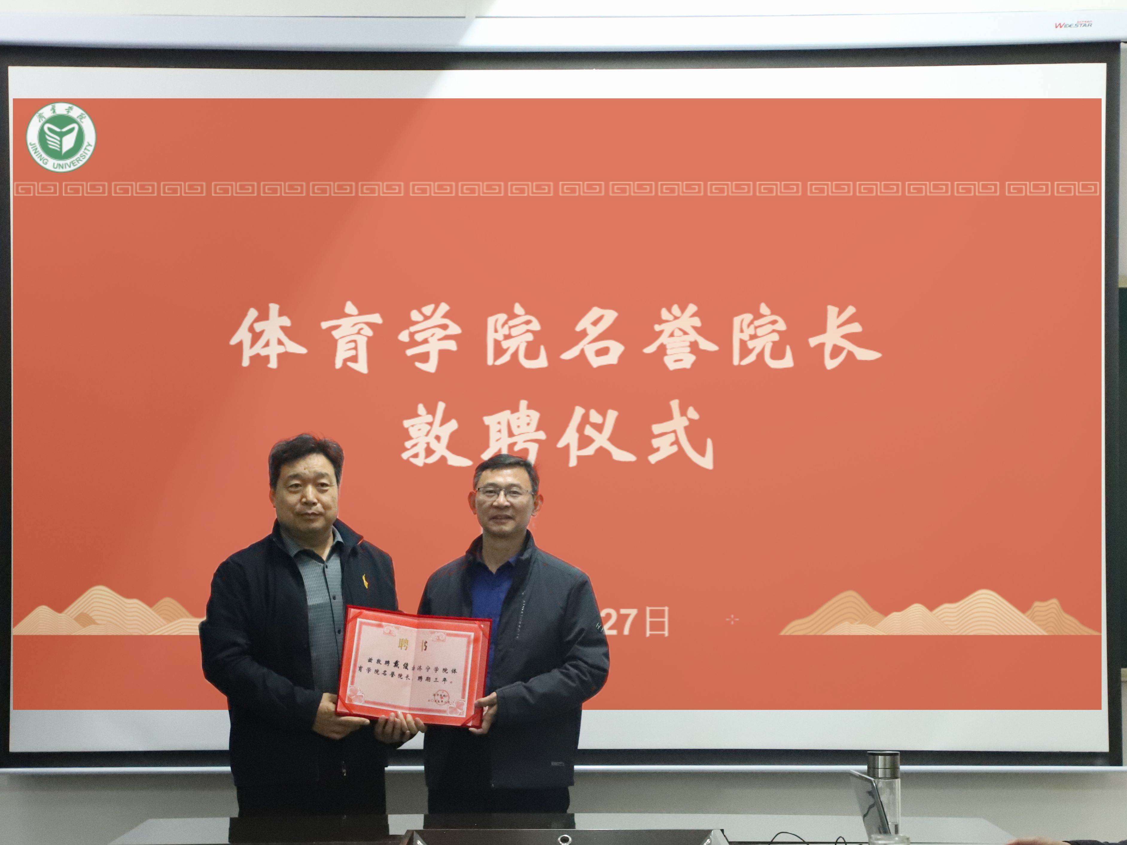 2月27日下午,体育学院名誉院长敦聘仪式在二楼会议室举行,盐城师范学院戴俊教授受聘为亚星在线登录官网体育学院名誉院长。党委副书记、校长王清明出席仪式并为戴俊教授颁发聘书,体育学院全体教职工参加,仪式由体育学院院长徐刚主持。