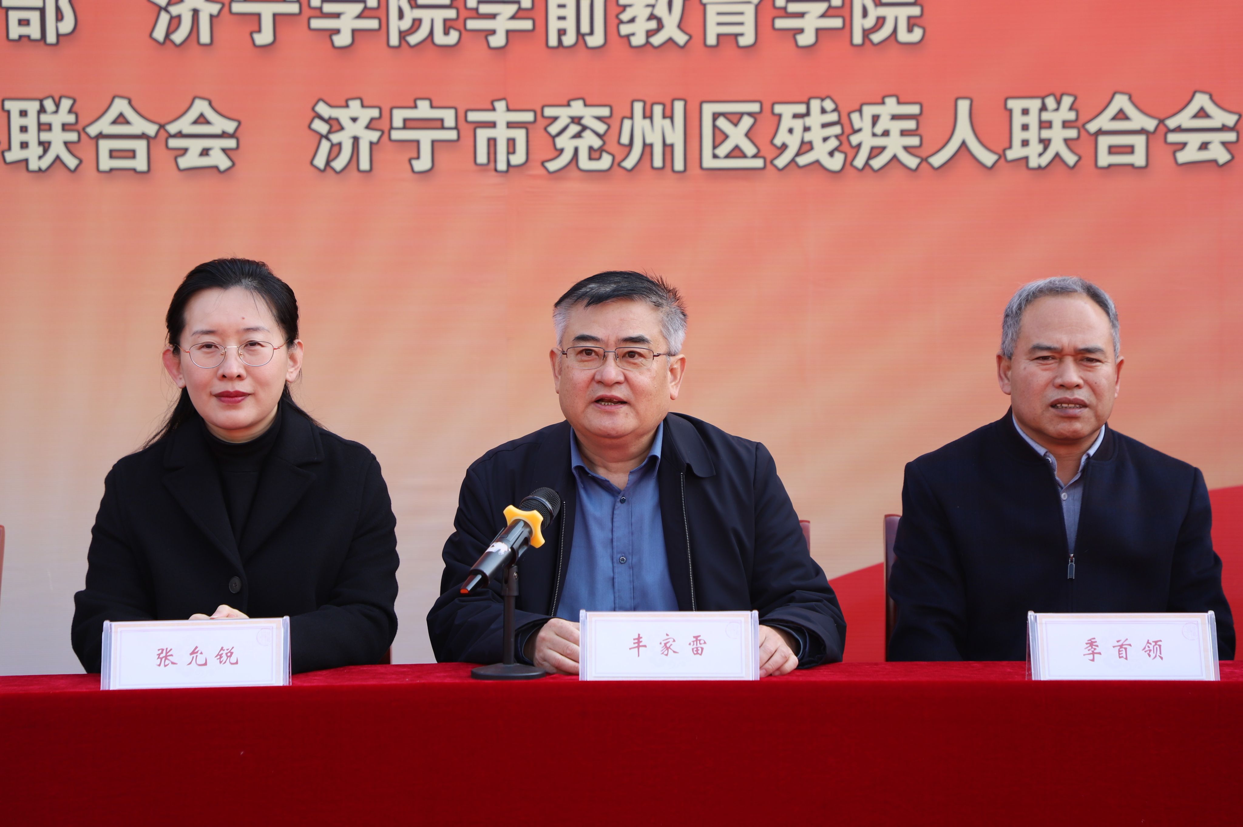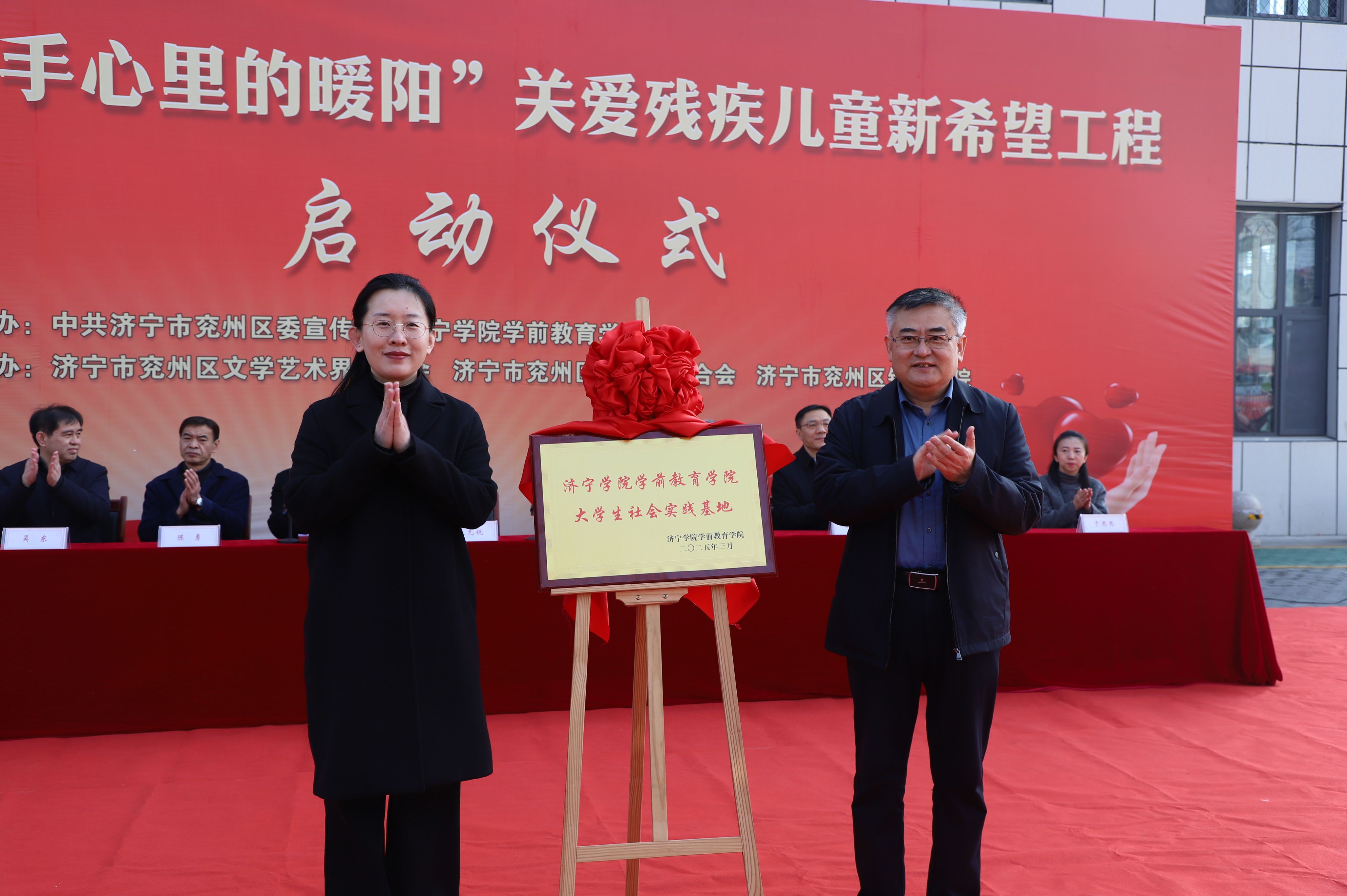 3月5日,在第62个学雷锋纪念日暨第26个中国青年志愿者服务日之际,由我校学前教育学院联合中共济宁市兖州区委宣传部、济宁市兖州区文学艺术界联合会、济宁市兖州区残疾人联合会、济宁市兖州区铁路医院多部门,携手发起的“手心里的暖阳”关爱残疾儿童新希望工程启动仪式在兖州区铁路医院康复中心隆重举行。我校党委副书记丰家雷,兖州区委常委、宣传部部长张允锐,副区长宋恩全,学前教育学院党政领导班子,区文联、区残联、区铁路医院主要负责同志等出席活动。区文联文艺助残志愿者及各协会代表,我校学前教育学院大学生志愿者代表,区铁路医院残疾儿童康复中心残疾儿童和家长代表,社会各界关爱残疾儿童的爱心单位和爱心人士代表参加活动。活动由宋恩全主持。