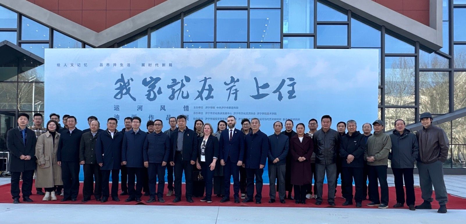 3月17日,我家就在岸上住——运河风情油画作品展在我校美术馆隆重开幕,党委副书记、校长王清明及校领导班子成员,山东省文联副主席王方晨,济宁市文化传承发展中心主任李芳,曲阜文化建设示范区党工委副书记、推进办主任朱湘华,济宁市文化交流协会主席、市文联原主席、二级巡视员周长征,俄罗斯彼尔姆国立人文师范大学国际合作交流处处长安娜塔西亚,俄罗斯萨马拉国立技术大学热电与工程学院院长康斯坦丁及行业嘉宾共同出席开幕式。仪式由我校党委副书记丰家雷主持。