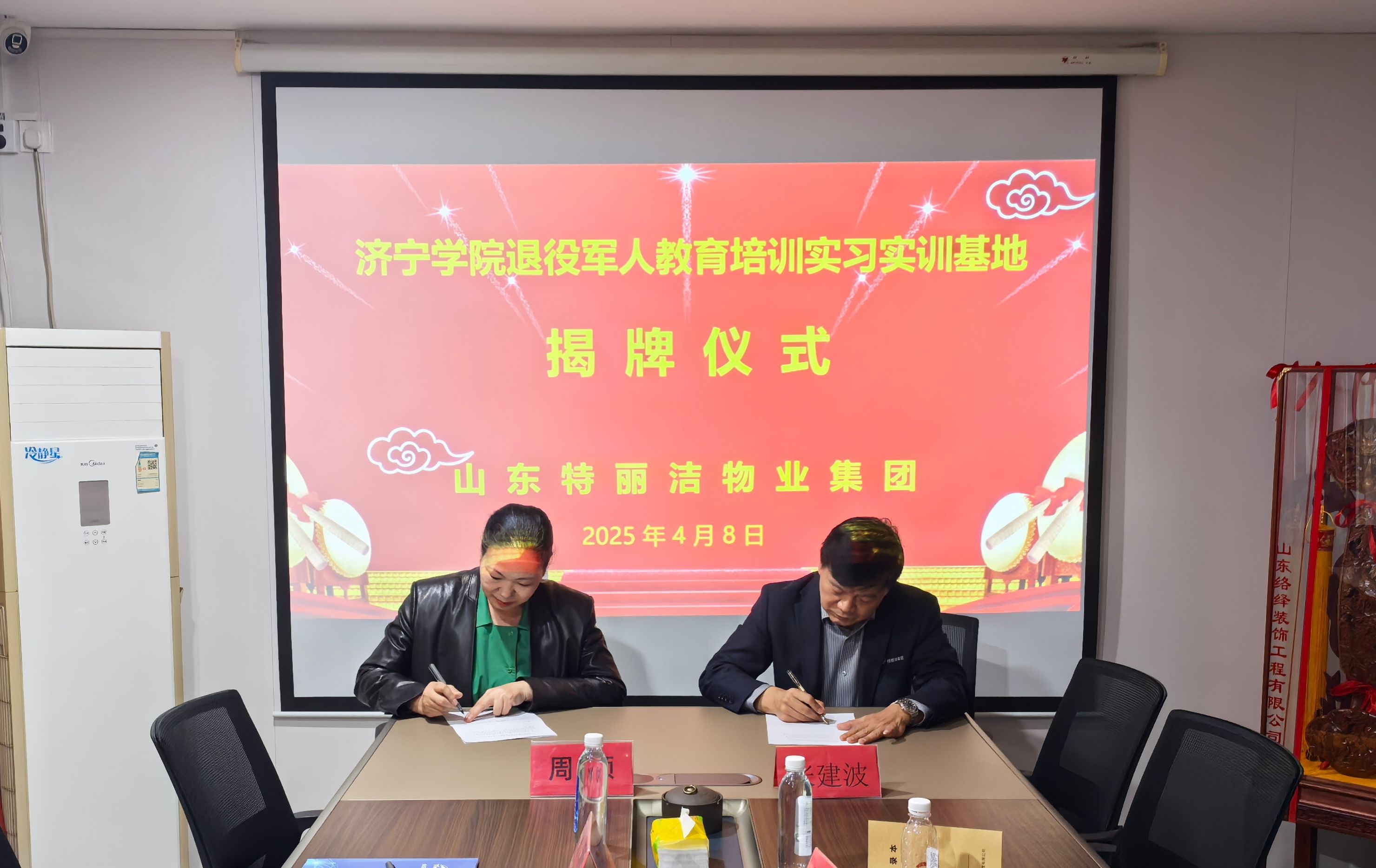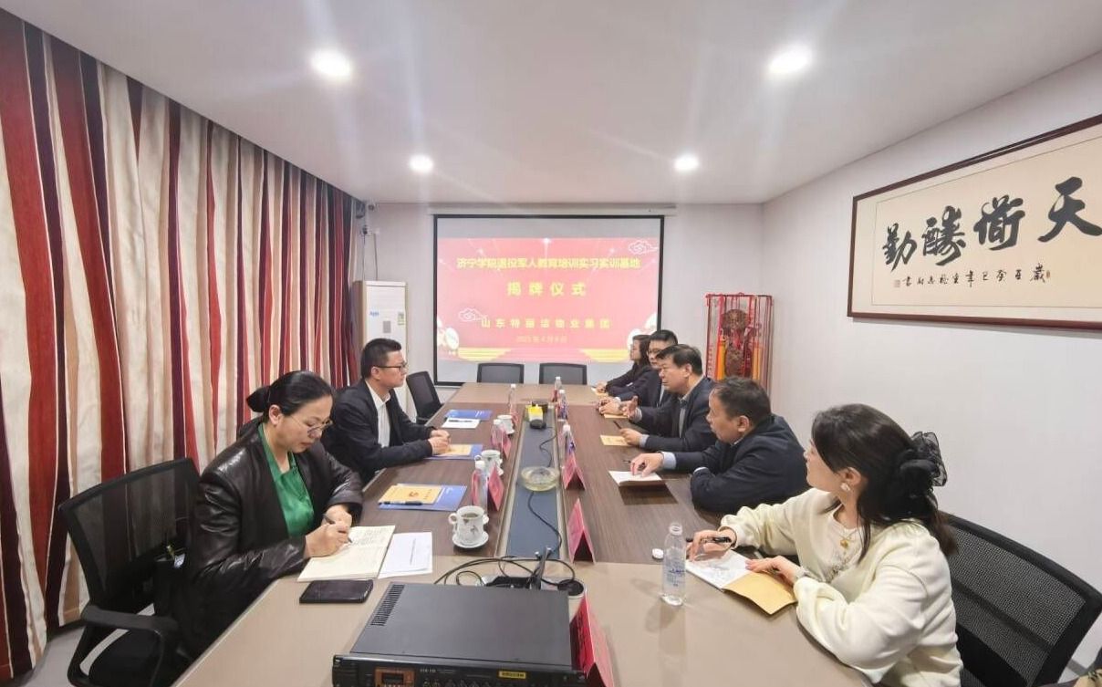 4月8日,亚星在线登录官网副校长刘国栋一行赴山东特丽洁物业集团有限公司洽谈,并为“亚星在线登录官网退役军人教育培训实习实训基地”揭牌。兖州区退役军人事务局党组成员、副局长冯寿波,山东特丽洁物业集团有限公司董事长张建波,教育培训学院副院长周颖出席活动。