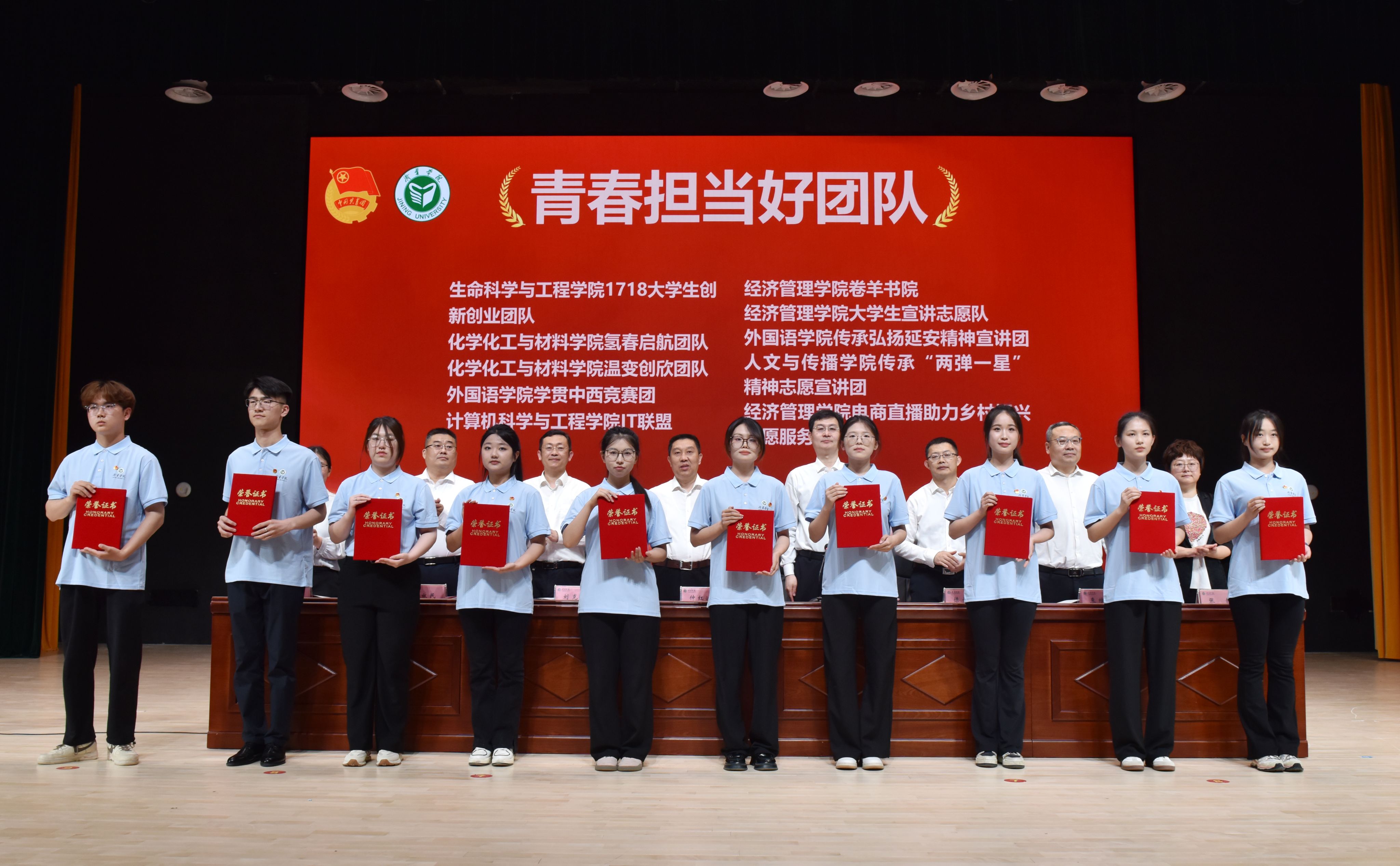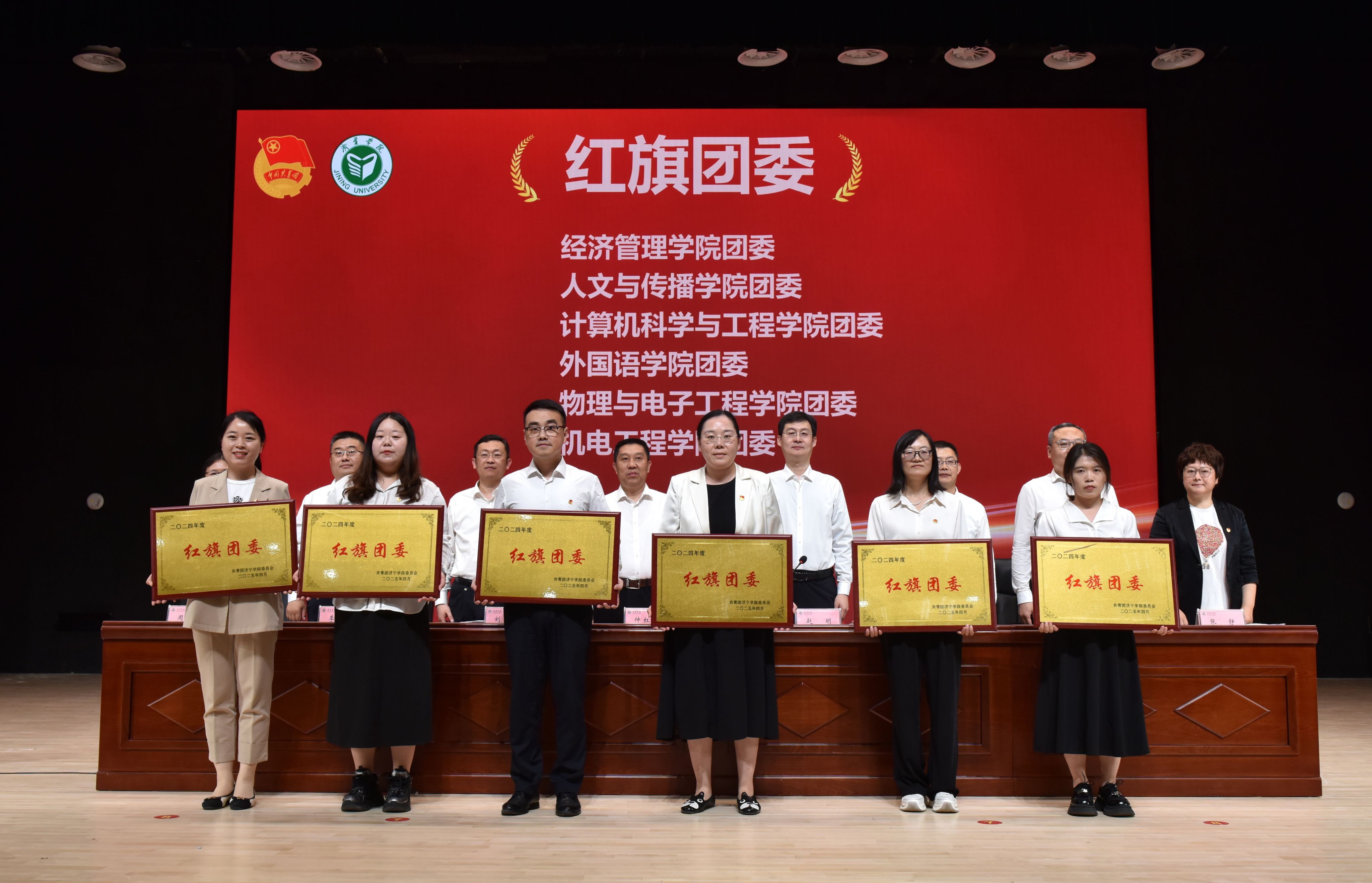 大会对学校共青团工作涌现的优秀青年集体和个人进行集中表彰,授予经济管理学院团委等6个单位“红旗团委”荣誉称号,授予马克思主义学院团委等12个单位“特色团委”荣誉称号,授予人文与传播学院团委等10个单位“孔子文化春会·社团嘉年华活动优秀组织单位”荣誉称号,授予生命科学与工程学院1718创新创业团队等10个团队“青春担当好团队”荣誉称号,授予物理与电子工程学院学生会等8个单位“先锋学生会”荣誉称号,授予教师教育学院志愿者协会等8个单位“志愿服务先进集体”荣誉称号。大会还表彰了“红旗团支部”“优秀团员”“优秀团干部”“校园百星”等奖项。