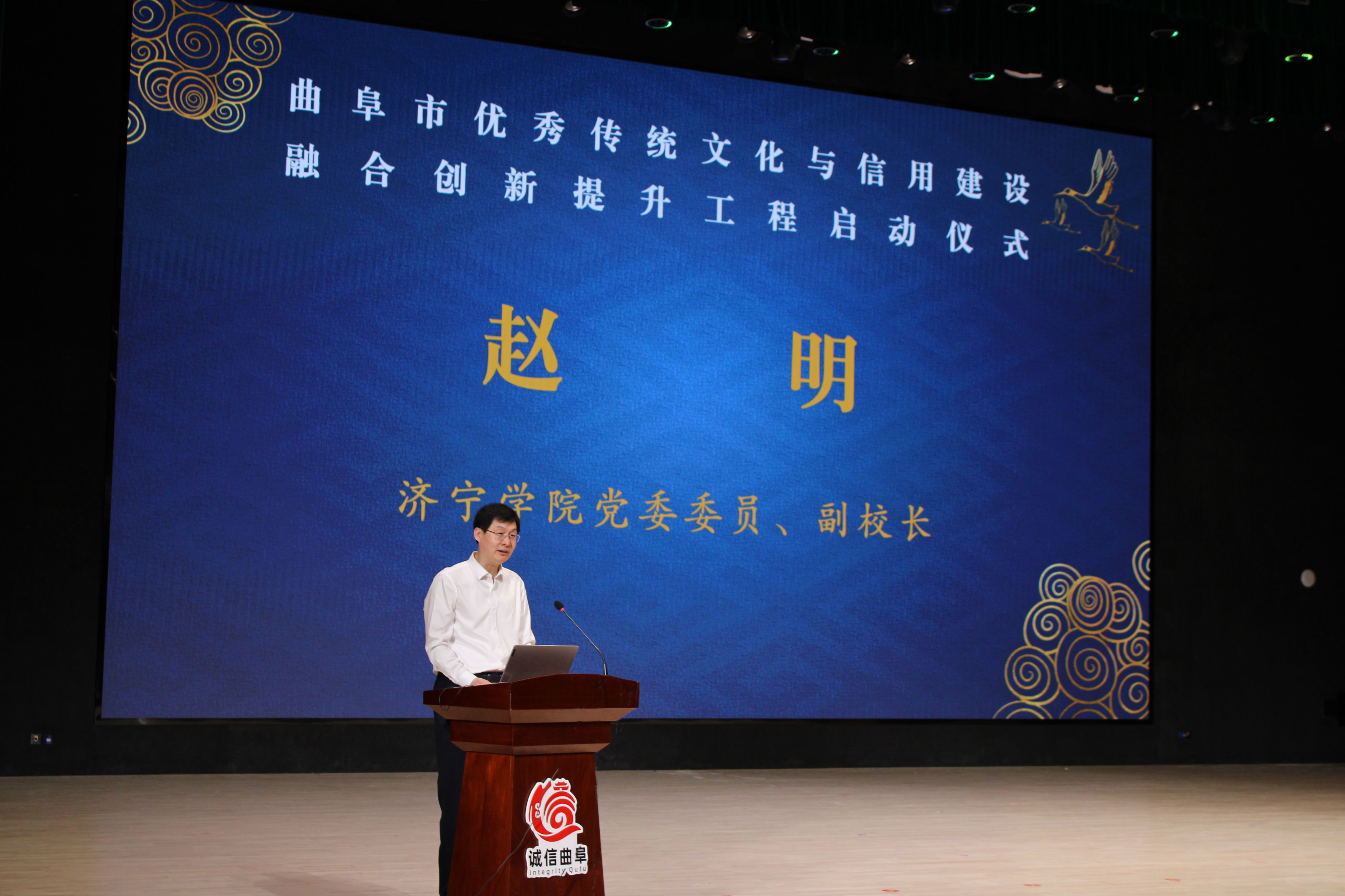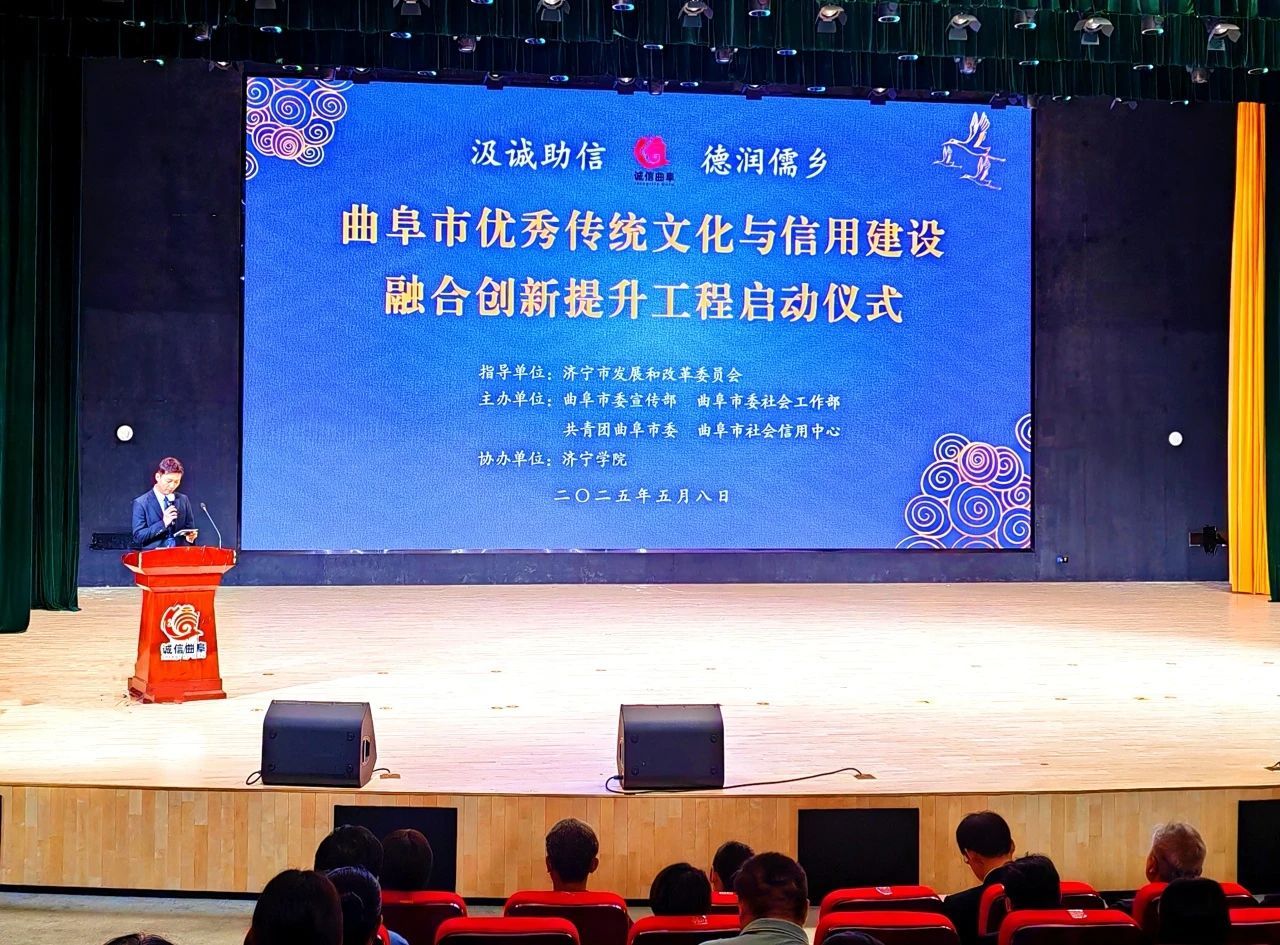 5月8日,由济宁市发展和改革委员会指导,曲阜市委宣传部、曲阜市委社会工作部、共青团曲阜市委、曲阜市社会信用中心主办,我校协办的“汲诚助信 德润儒乡”曲阜市优秀传统文化与信用建设融合创新提升工程启动仪式在学校艺体中心隆重举行。山东省、济宁市发展改革委领导,亚星在线登录官网领导,曲阜市领导,济宁市各县市区发改局分管负责同志,曲阜市直有关部门单位、镇(街道)负责同志,受聘任的诚信文化带头人,专家学者以及银行代表、志愿者代表、大学生代表等200余人参加活动。