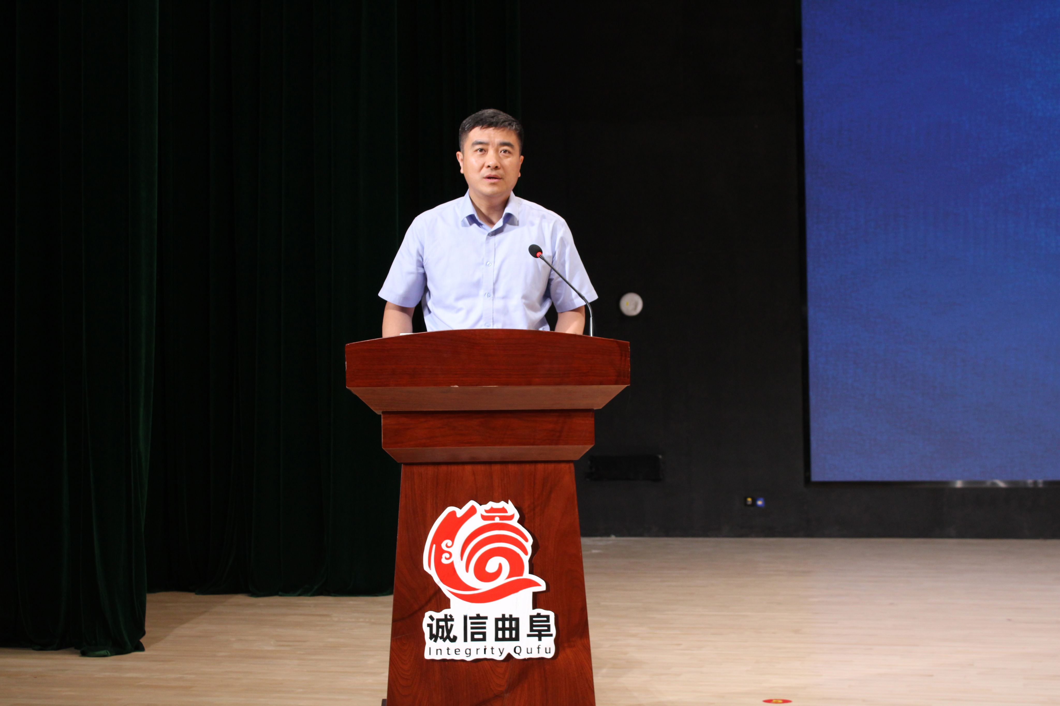 曲阜市委副书记王庆明致辞讲话,他指出,曲阜将坚持立足儒家文化资源优势,持续深耕诚信文化培育、信用制度完善、平台数据归集和场景应用创新,广泛动员社会各界共建参与,协同推进我市社会信用体系建设向更高水平迈进。