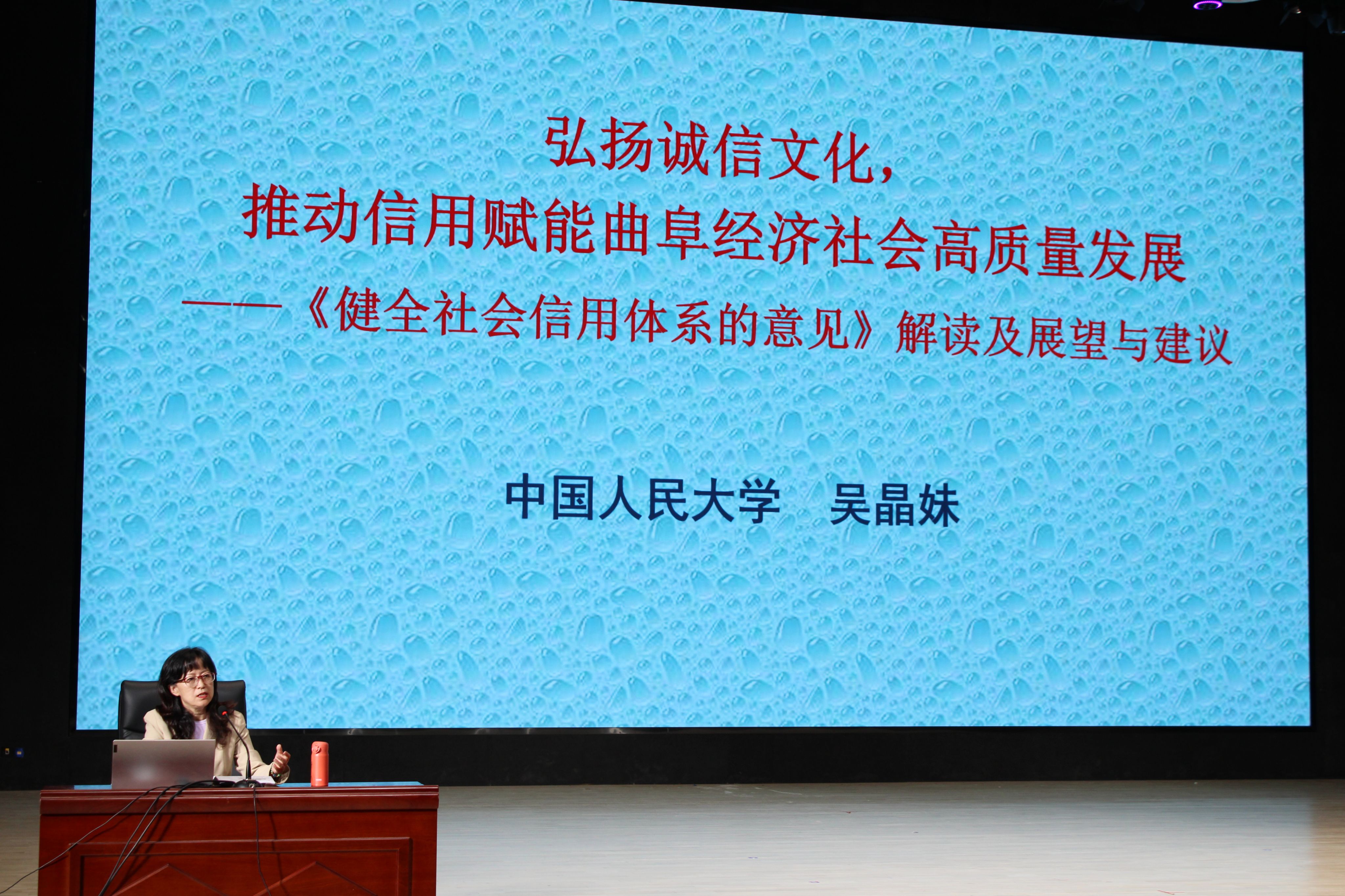 中国人民大学信用管理专业教授吴晶妹作了题为《弘扬诚信文化,推动信用赋能曲阜经济社会高质量发展》的演讲,结合《中共中央办公厅国务院办公厅关于健全社会信用体系的意见》深度剖析曲阜信用建设实践,并从六大维度构建系统性指导框架,强调要激活传统文化中的信用基因,推动信用价值进一步服务于便民惠企红利释放,助力社会运行效率与治理效益双提升。