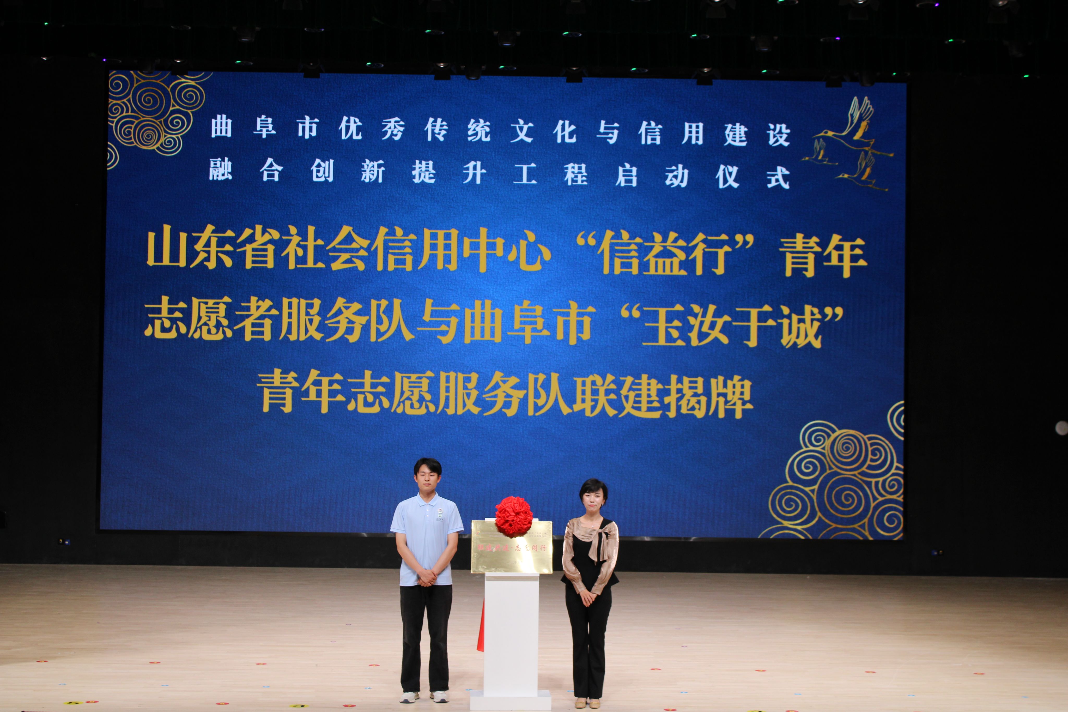曲阜市委社会工作部部长王国栋为“玉汝于诚”青年志愿服务队授旗,学校志愿服务队队长、经济管理学院郑庆硕同学代表团队接受了授旗。山东省社会信用中心“信益行”青年志愿者服务队与“玉汝于诚”青年志愿服务队联建共建,通过资源共享、优势互补加强联动,开启一系列“诚信文化”志愿服务与体验活动,谱写青年志愿服务助力社会信用体系建设的新篇章。