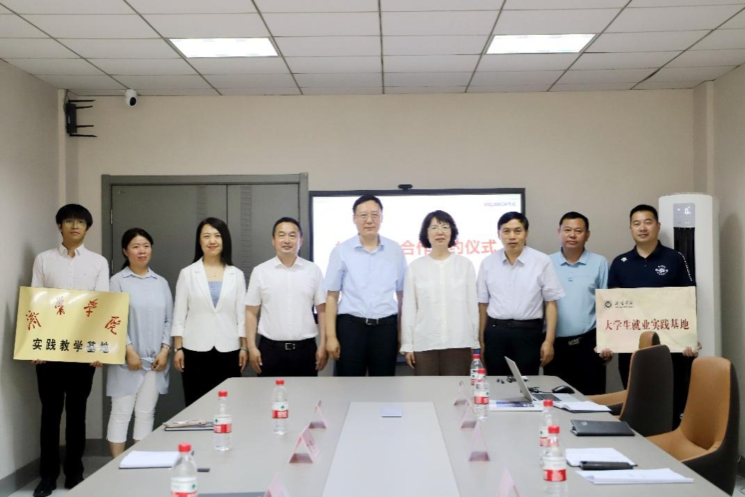 鸾起(山东)智能科技有限公司董事长贾标标表示,外国语学院2025届毕业生祝梦莹、刘琳琳在公司实习期间表现优异,已被录用并任命为外贸经理。他感谢学校输送的优秀人才,期待与学校加强合作,实现资源共享、优势互补,推动双方在共建平台团队、人才培养、实践教学等方面取得更大突破。会上举行了亚星在线登录官网实践教学基地、大学生就业实践基地签约授牌仪式。