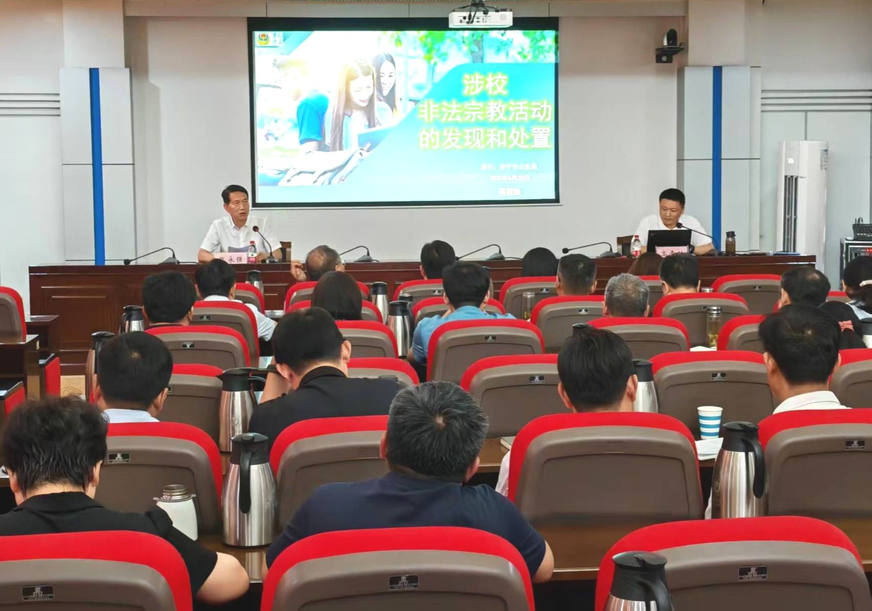 为深入贯彻落实习近平总书记关于加强宗教事务治理的重要指示批示精神,提升学校干部队伍抵御防范渗透的能力,6月20 日下午,学校邀请山东省教育厅宗教政策研究宣讲培训专家、济宁市公安局政保支队一大队副大队长高雪灿在行政楼C301作题为《涉校非法宗教活动的发现和处置》专题报告。报告会由校党委委员、统战部部长张永强主持,各二级学院党委书记、副书记、团委书记及全体辅导员参加会议。