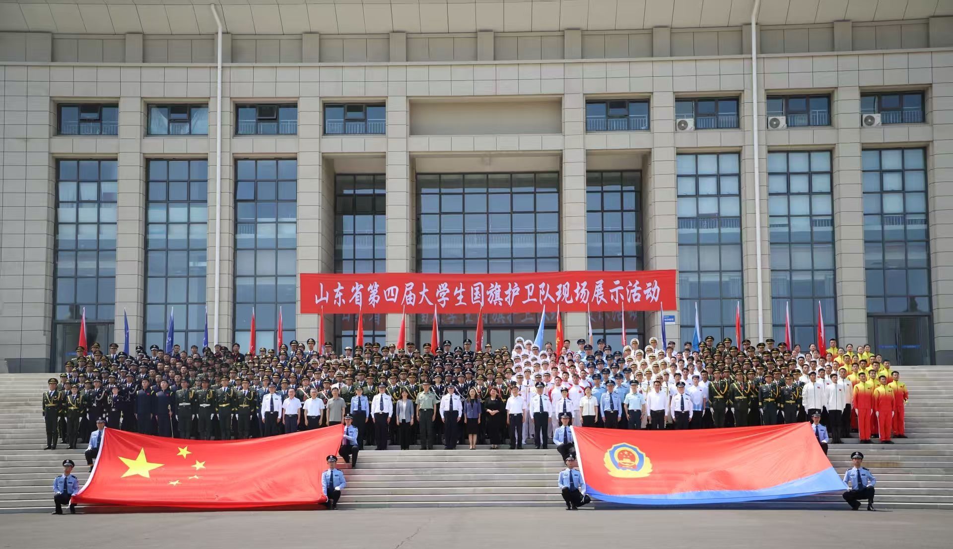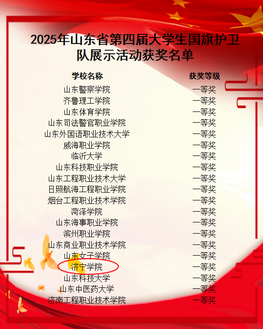 近日,山东省第四届大学生国旗护卫队现场展示活动在山东警察学院(明水校区)举行。我校国旗护卫队参赛队员与来自全省的共142所高校的国护队员同场竞技,凭借出色表现荣获团体一等奖的佳绩,此外,资源环境与安全工程学院王昌凯获“标兵升旗手”荣誉称号,化学化工与材料学院孙朝睿、崔小雨获“队列标兵”荣誉称号。