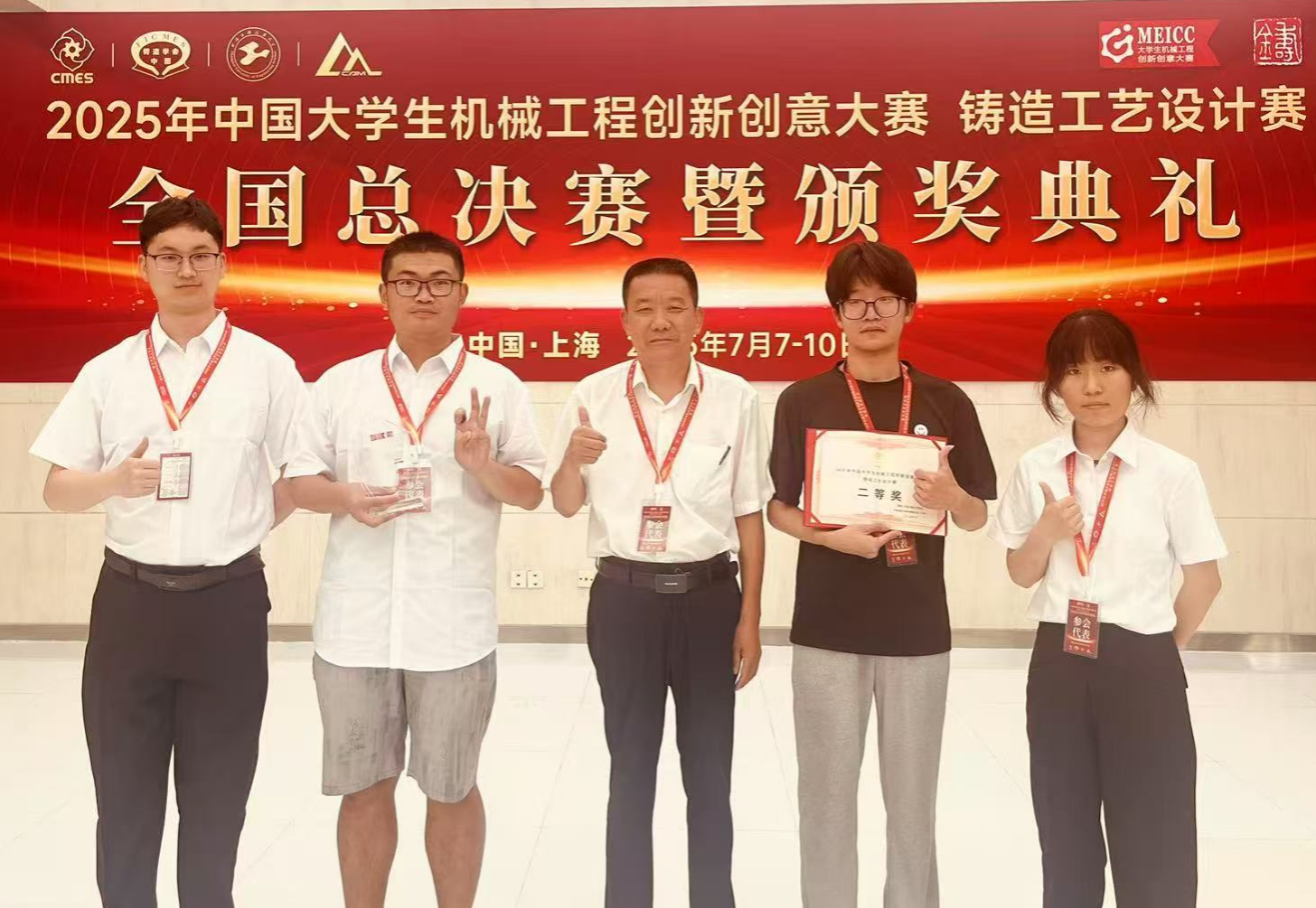 7月7日至10日,2025年全国大学生机械工程创新创意大赛铸造工艺设计赛全国总决赛暨颁奖典礼在上海工程技术大学举行,我校获得全国二等奖1项。