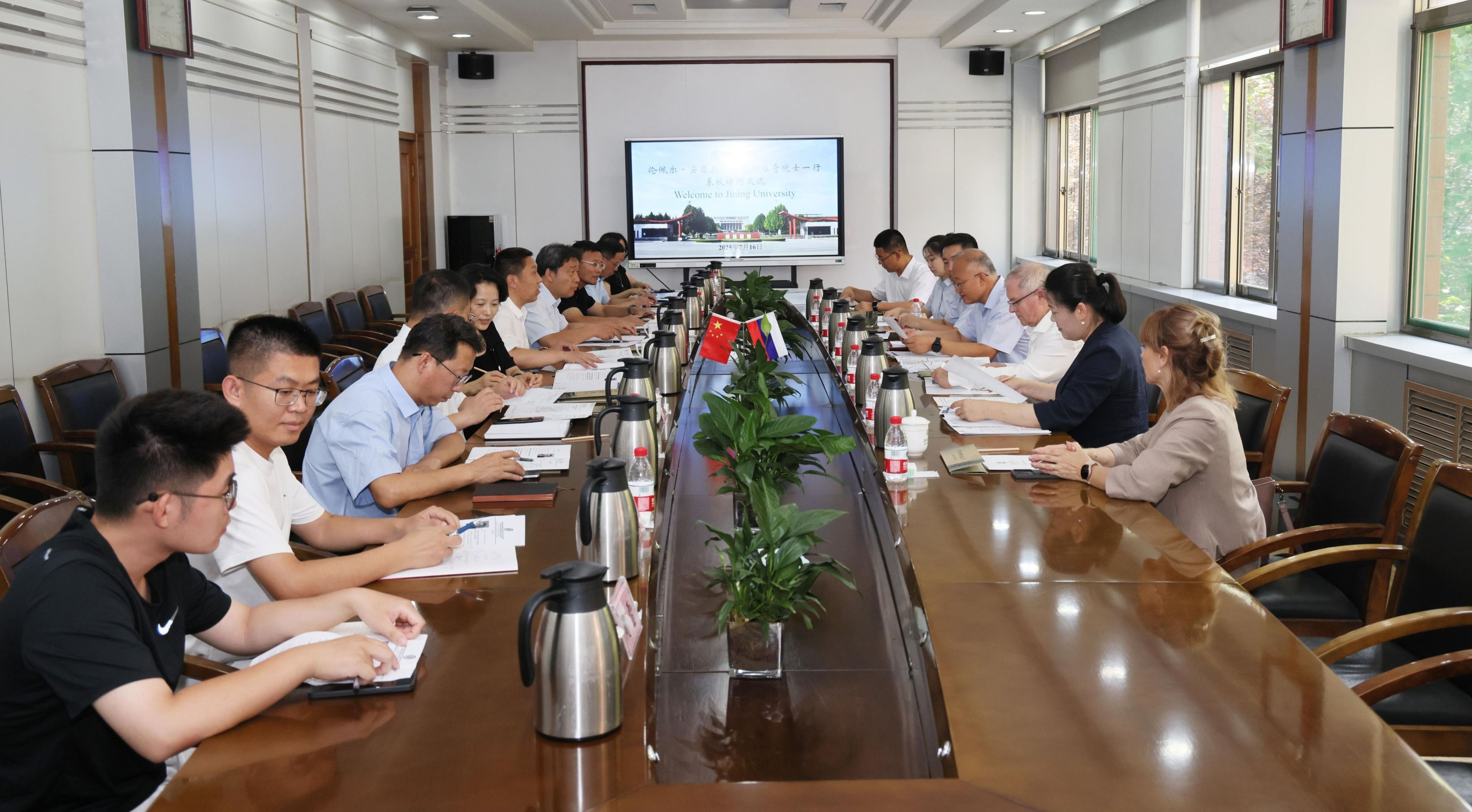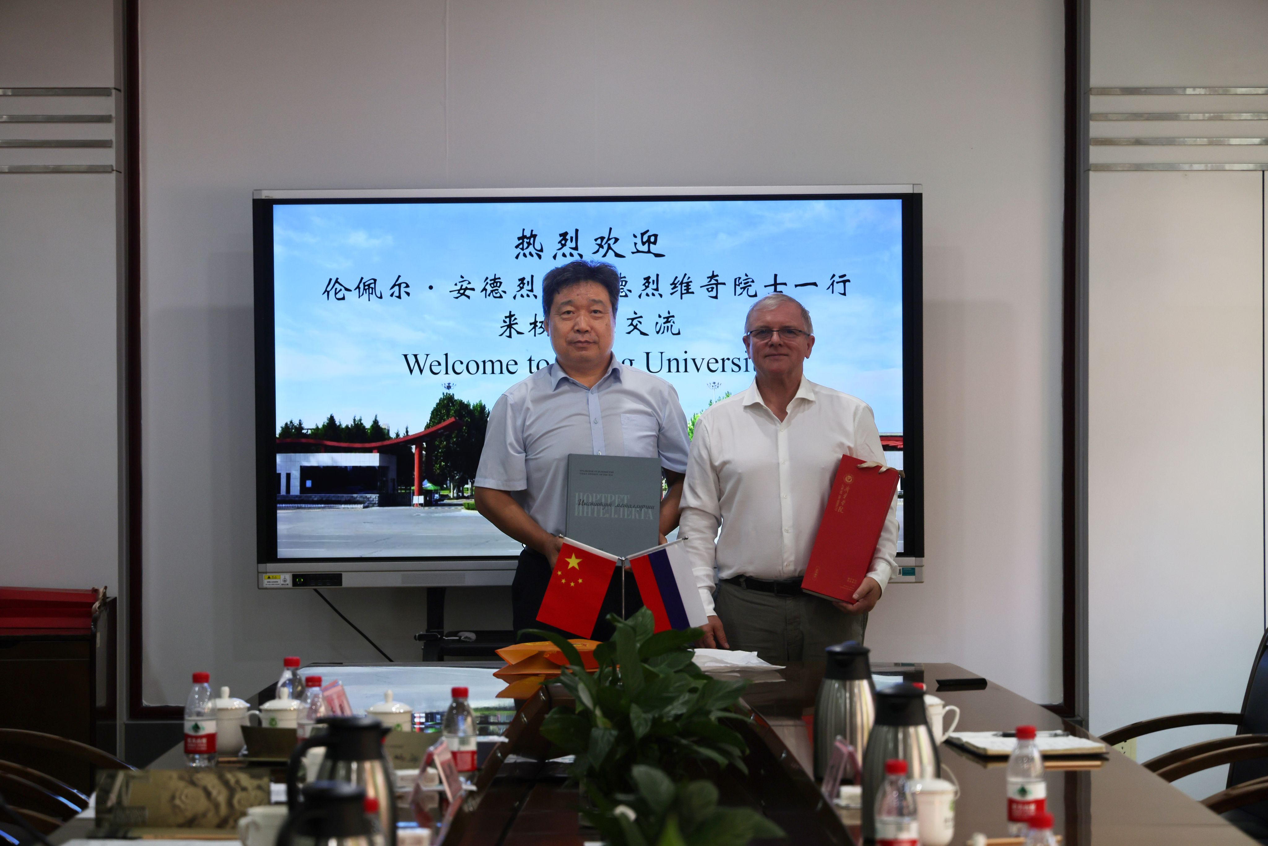 7月16日,俄罗斯科学院院士伦佩尔·安德烈·安德烈维奇,山东人才集团有限公司党委委员、副总经理褚国良,俄中人文科技合作促进会会长纪进凤等来校访问交流。我校党委书记仲红波,党委副书记、校长王清明,党委委员、副校长尹春光热情接待来宾并出席座谈会。科研处、人事处、物理与电子工程学院、国际教育学院相关人员参加座谈。