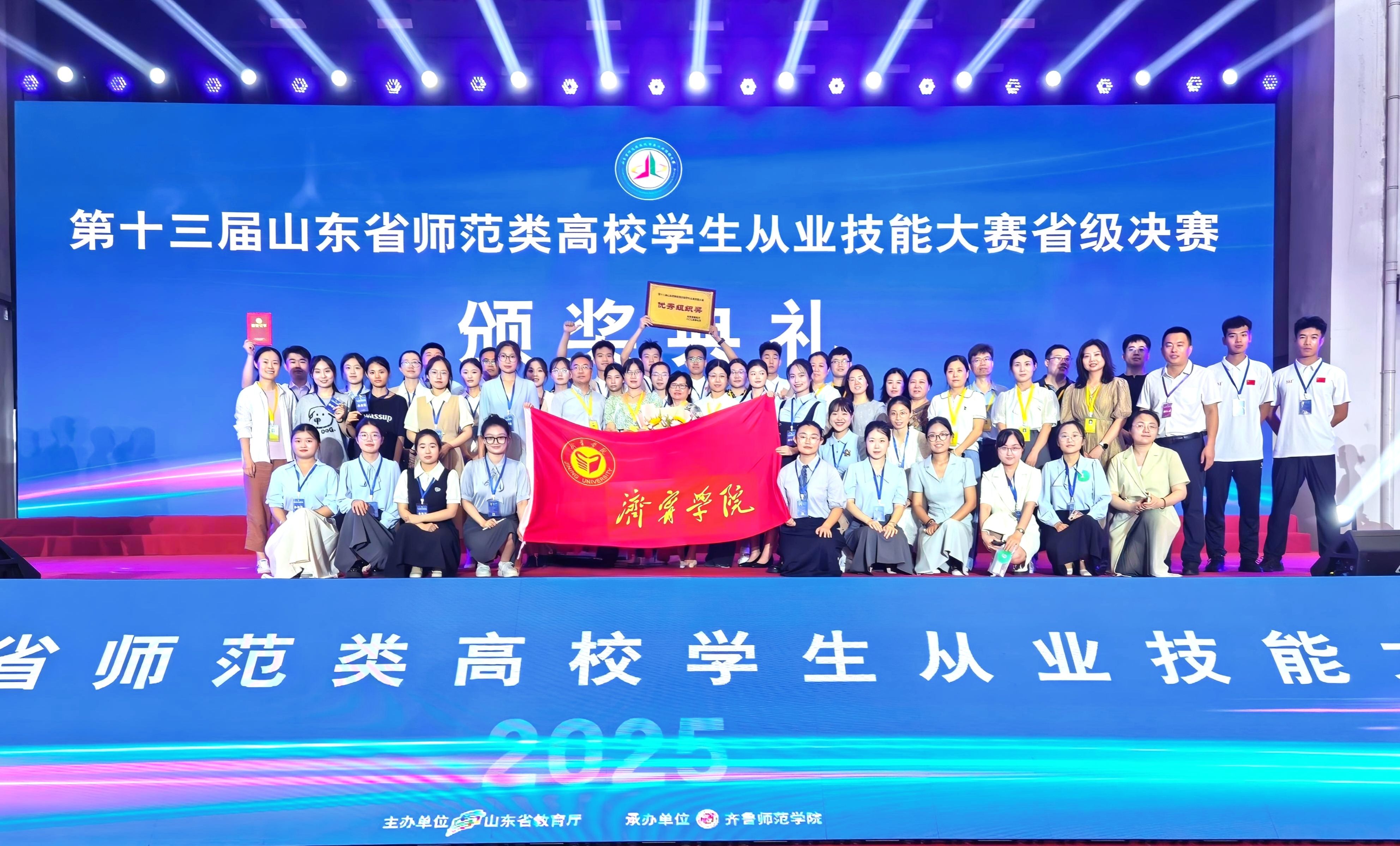 7月16日至20日,山东省第十三届师范类高校学生从业技能大赛在齐鲁师范学院举行。我校参赛团队表现优异,荣获团体铜奖与优秀组织奖双项集体荣誉。魏鑫如等12位同学获得一等奖、王萍慧等13位同学获得二等奖、王庆淼等18位同学获得三等奖,刘凯等12位教师获评省级优秀辅导教师,获奖数量创历史新高。