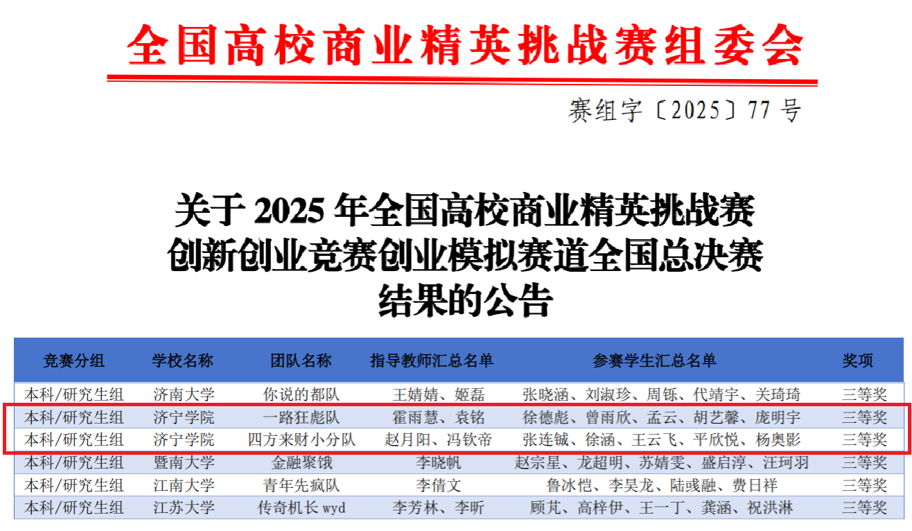 下一步,学院将充分利用暑期黄金时间,持续备战大学生电子商务“创新、创意及创业”挑战赛全国总决赛、高等院校数智化企业经营沙盘大赛全国总决赛等赛事,组织师生深化训练、精研方案,力争再创佳绩。