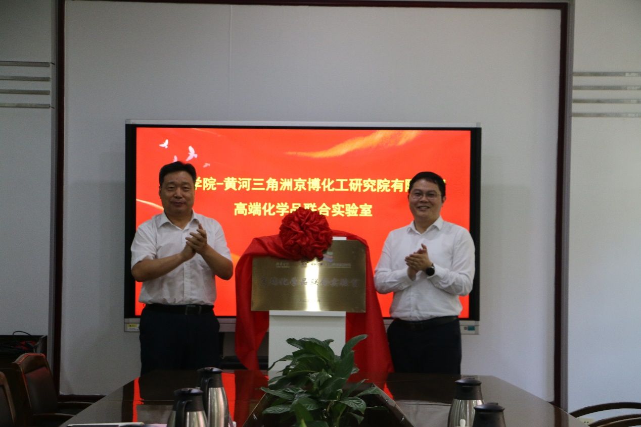 仪式上,王清明与京博研究院集团产业技术融创研究中心主任于博代表双方签署联合实验室共建协议。随后,王清明与邹雄共同为"亚星在线登录官网-黄河三角洲京博化工研究院有限公司高端化学品联合实验室"揭牌。根据协议,实验室将重点开展高端化学品领域的研究工作,促进科技成果转化应用。