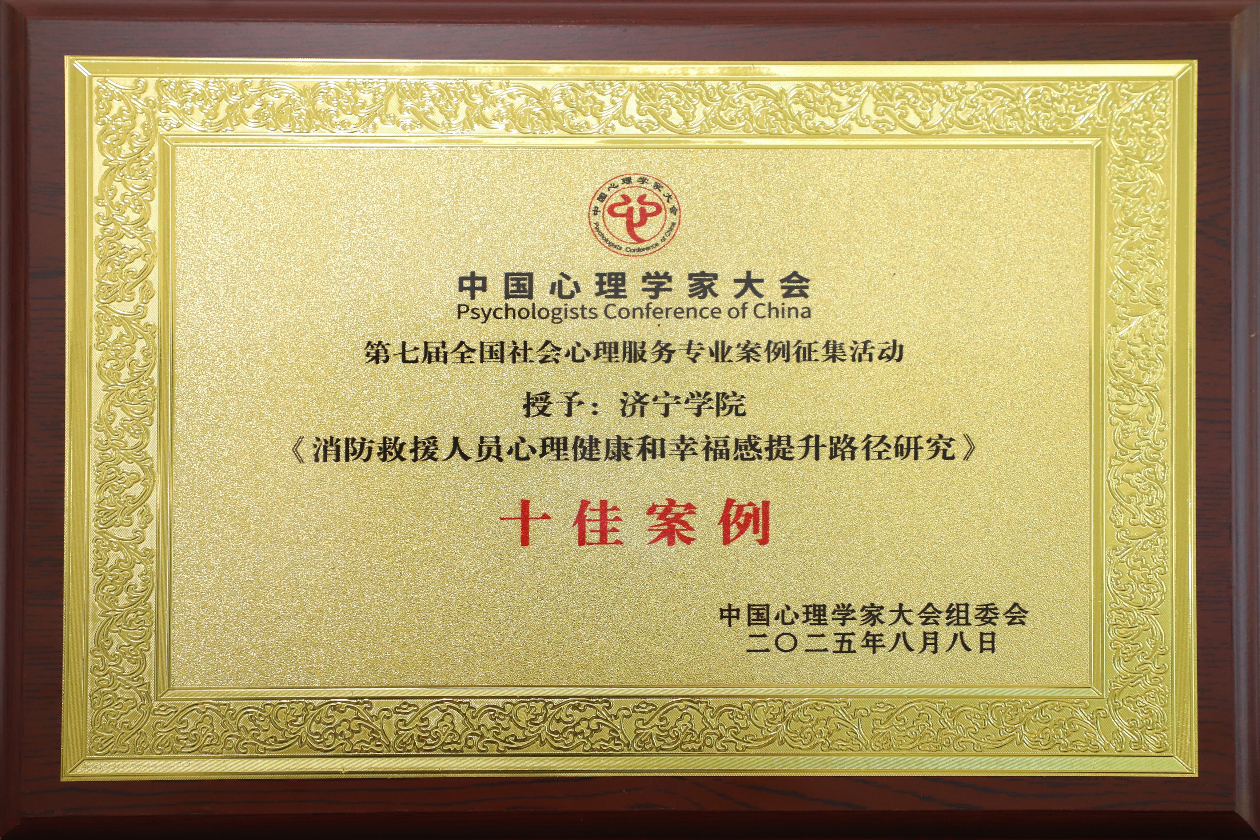 在日前举办的中国心理学家大会上,我校心理服务团队项目《消防救援人员心理健康和幸福感提升路径研究》荣获第七届全国社会心理服务十佳案例,充分展示了我校在社会心理服务领域的理论研究深度、专业实践能力与社会服务价值,是学校学科建设、人才培养与社会需求精准对接的重要体现。