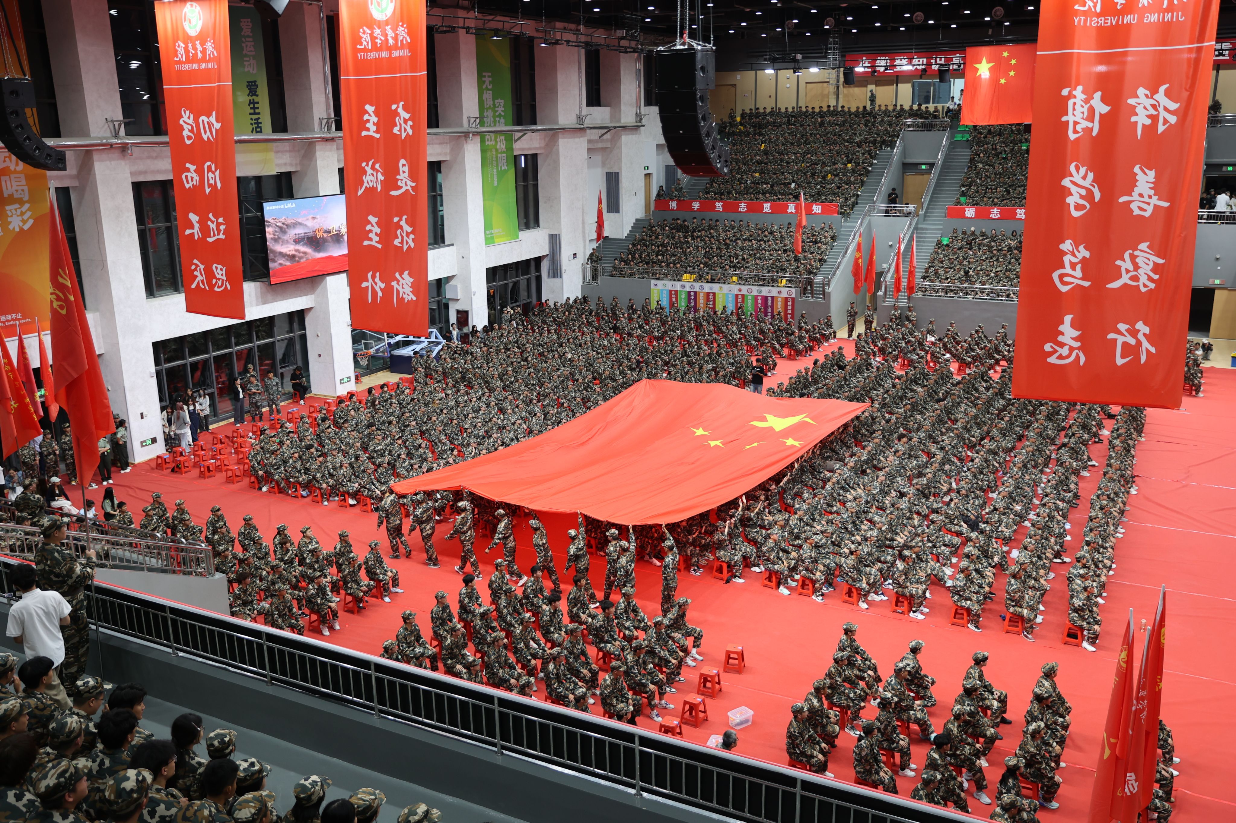为纪念“九一八”事变94周年和中国人民抗日战争暨世界反法西斯战争胜利80周年,千人红歌合唱精彩呈现。各连队歌声嘹亮、气势如虹,《保卫黄河》《强军战歌》等经典曲目响彻场馆,为入学教育注入了浓厚的红色底蕴与精神力量。