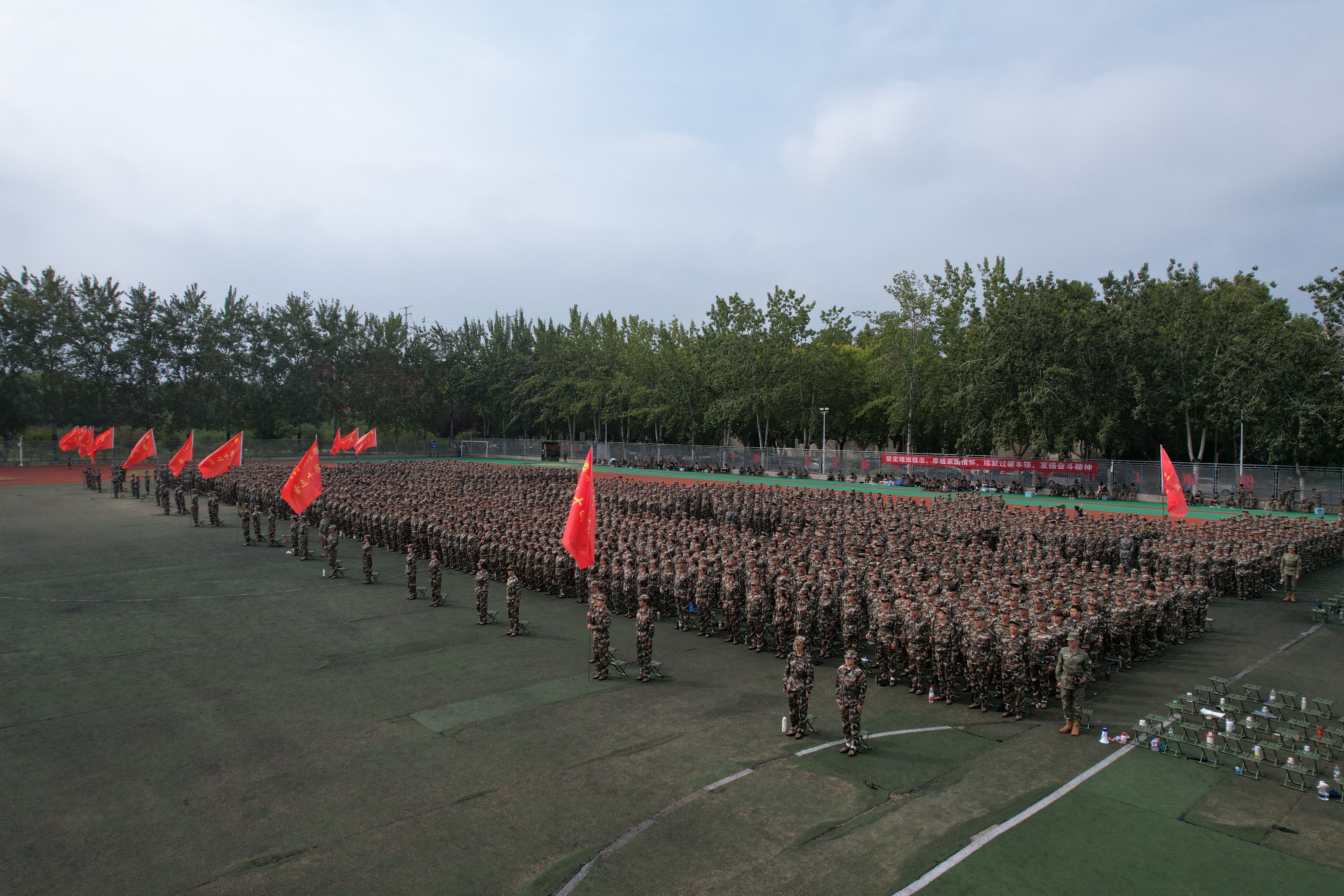 党委(院长)办公室、学生工作处、后勤管理与基建处、安全保卫处、校团委等部门和各二级学院党委书记,军训教导员、营长、新生辅导员及2025级全体参训学生参加了大会。