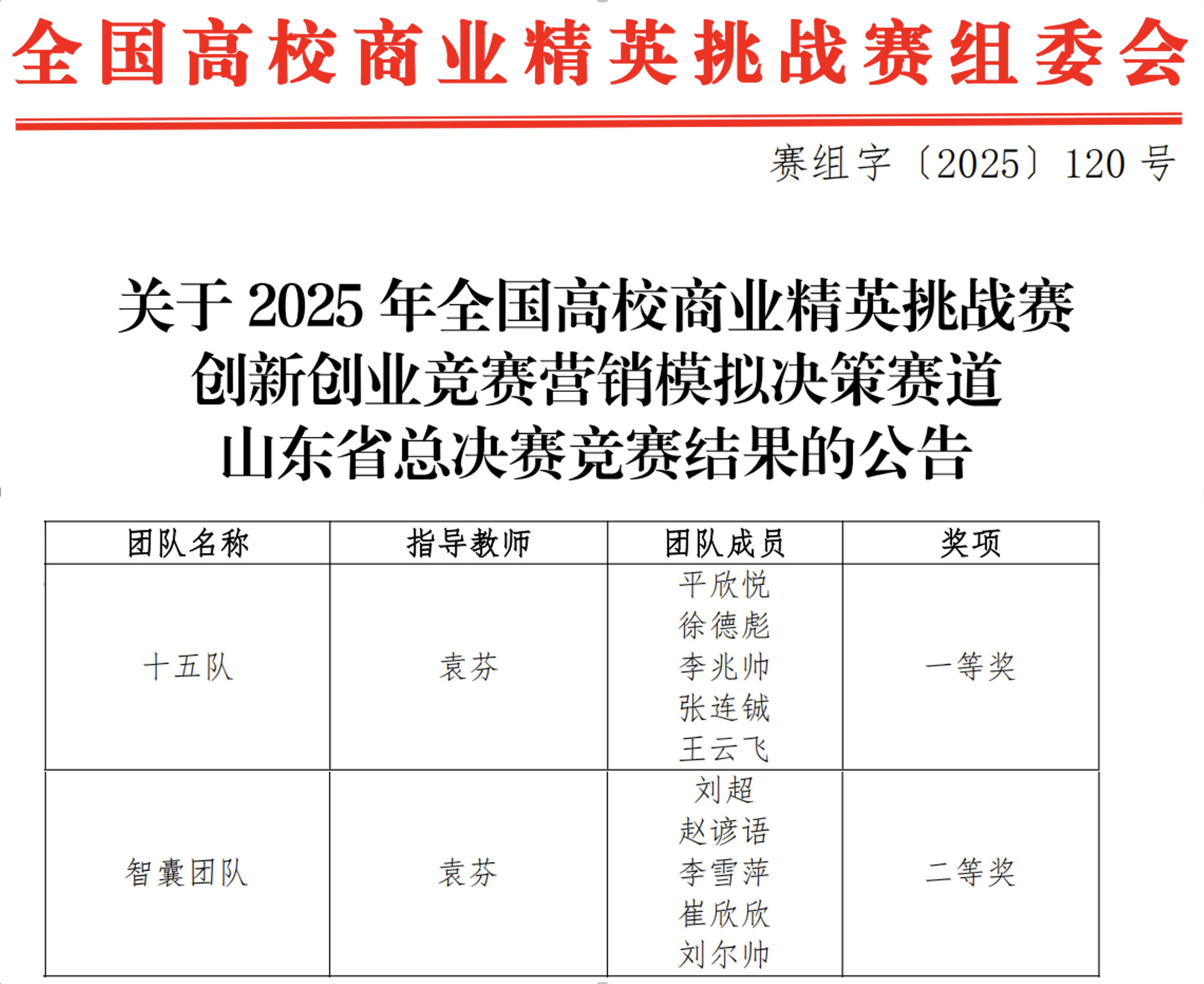 近日,中国国际贸易促进委员会商业行业委员会、中国国际商会商业行业商会和中国商业经济学会联合主办的2025年全国高校商业精英挑战赛创新创业竞赛营销模拟决策赛道山东省总决赛落下帷幕。我校经济管理学院荣获一等奖1项、二等奖1项,2支队伍晋级全国总决赛。