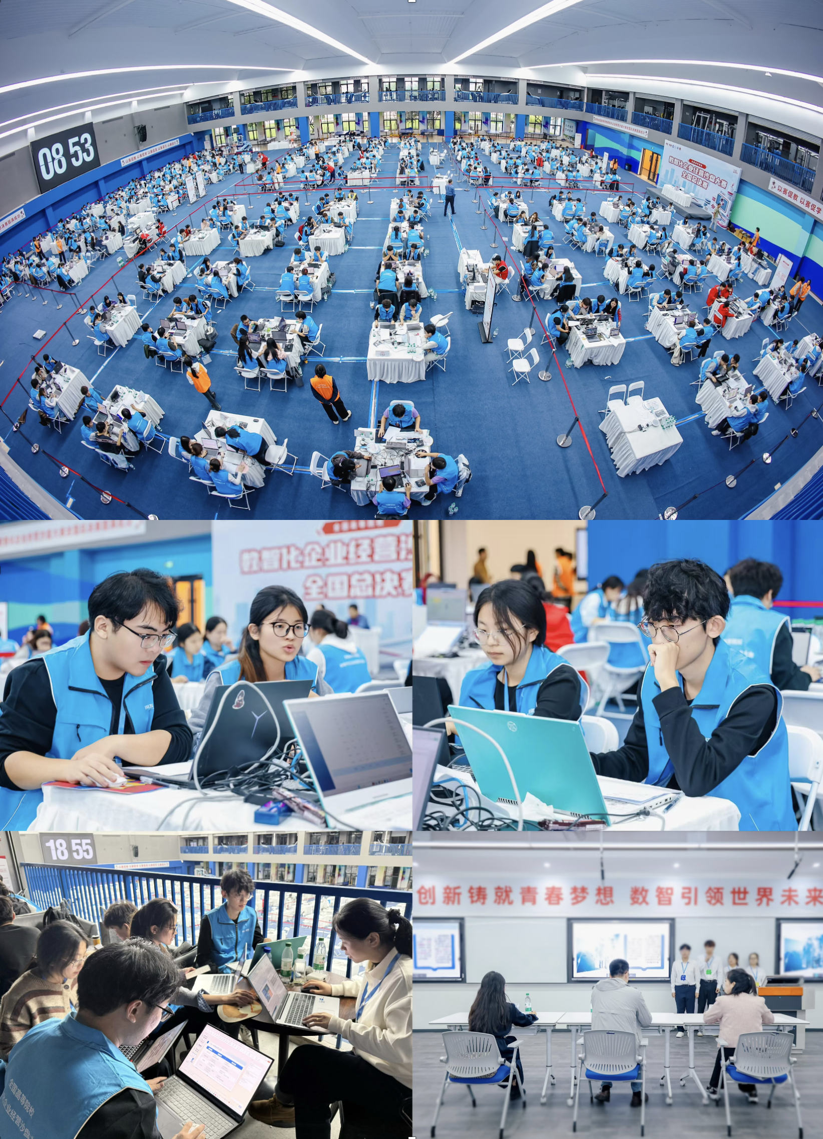 全国高等院校数智化企业经营沙盘大赛是中国高等教育学会《全国高校大学生竞赛排行榜》认定的重要学科竞赛。大赛采用新道数智企业经营管理沙盘系统为竞赛平台,通过高仿真的数智化企业经营管理场景,全面考查学生的企业经营管理应用综合技能、数智化管理动态决策能力、数智技术工具应用能力及团队协作能力。在这场对智力与耐力双重考验的角逐中,经管学子展现了出色的综合素质。面对第一阶段长达8小时的沙盘模拟对抗,团队成员保持沉着冷静,在高度仿真的动态市场环境中精准研判、果断决策,将数月备赛中积累的系统知识、实战经验与团队默契发挥得淋漓尽致。在第二阶段管理创新路演中,队员们凭借扎实的数据分析能力和清晰的逻辑表达,对经营成果进行系统复盘,并针对随机抽取的动态变量提出创新解决方案,充分展现了优秀的数智技术应用能力与创新思维。