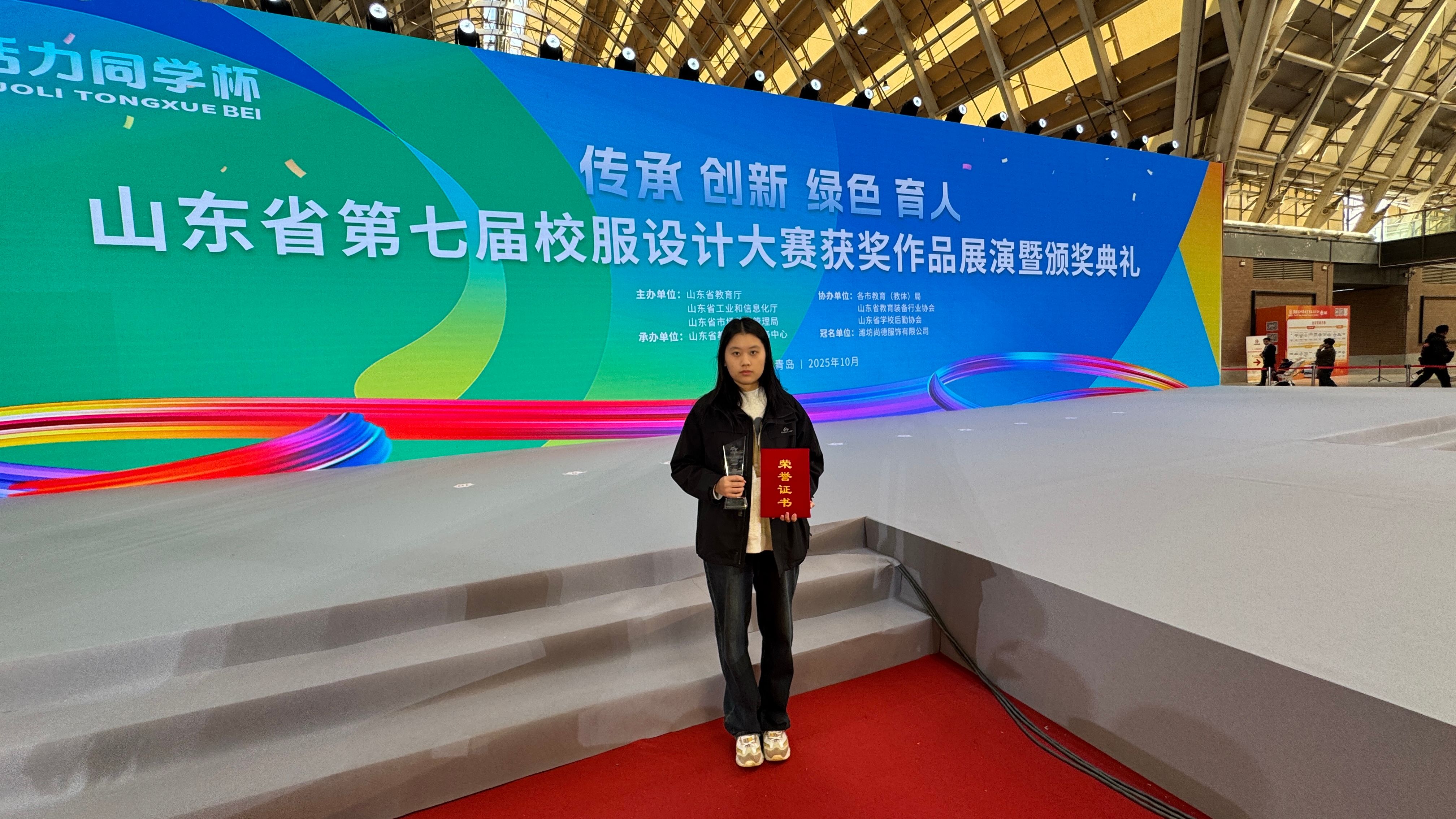 山东省第七届校服设计大赛由省教育厅、省工业和信息化厅、省市场监督管理局联合主办,共有138个单位和个人的1826件作品参赛。最终评选出一等奖55个,二等奖90个,三等奖114个,优秀组织奖20个。本届大赛以“传承、创新、绿色、育人”为主题,聚焦校服的文化内涵与实用价值。此次我校美术学院获奖作品全面展现了师生在设计创意、工艺执行与人文思考上的综合能力,作品中对“绿色设计”“文化传承”等理念的诠释,不仅响应了国家对校园服饰安全与可持续发展的要求,也为区域校服产业升级提供了创新思路。
