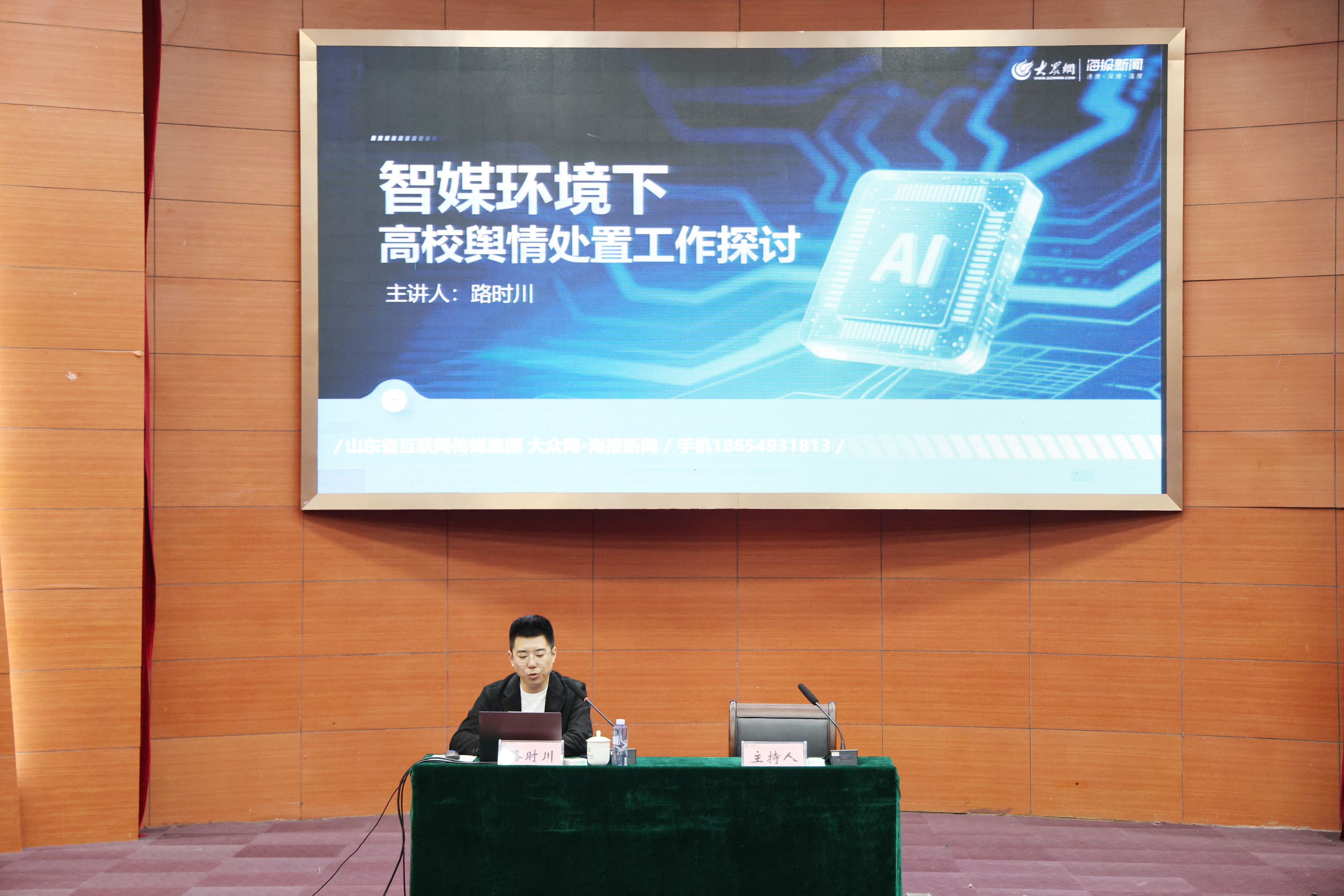 11月17日下午,我校在理科楼报告厅举办了舆情防范与处置专题辅导报告会,山东互联网传媒集团大众网·海报新闻教育频道主任路时川应邀作专题报告。校党委副书记丰家雷出席报告会。学校处级干部、全体辅导员以及各部门各单位宣传委员,融媒体中心骨干成员参加活动。报告会由党委委员、宣传部(教师工作部)部长刘克非主持。