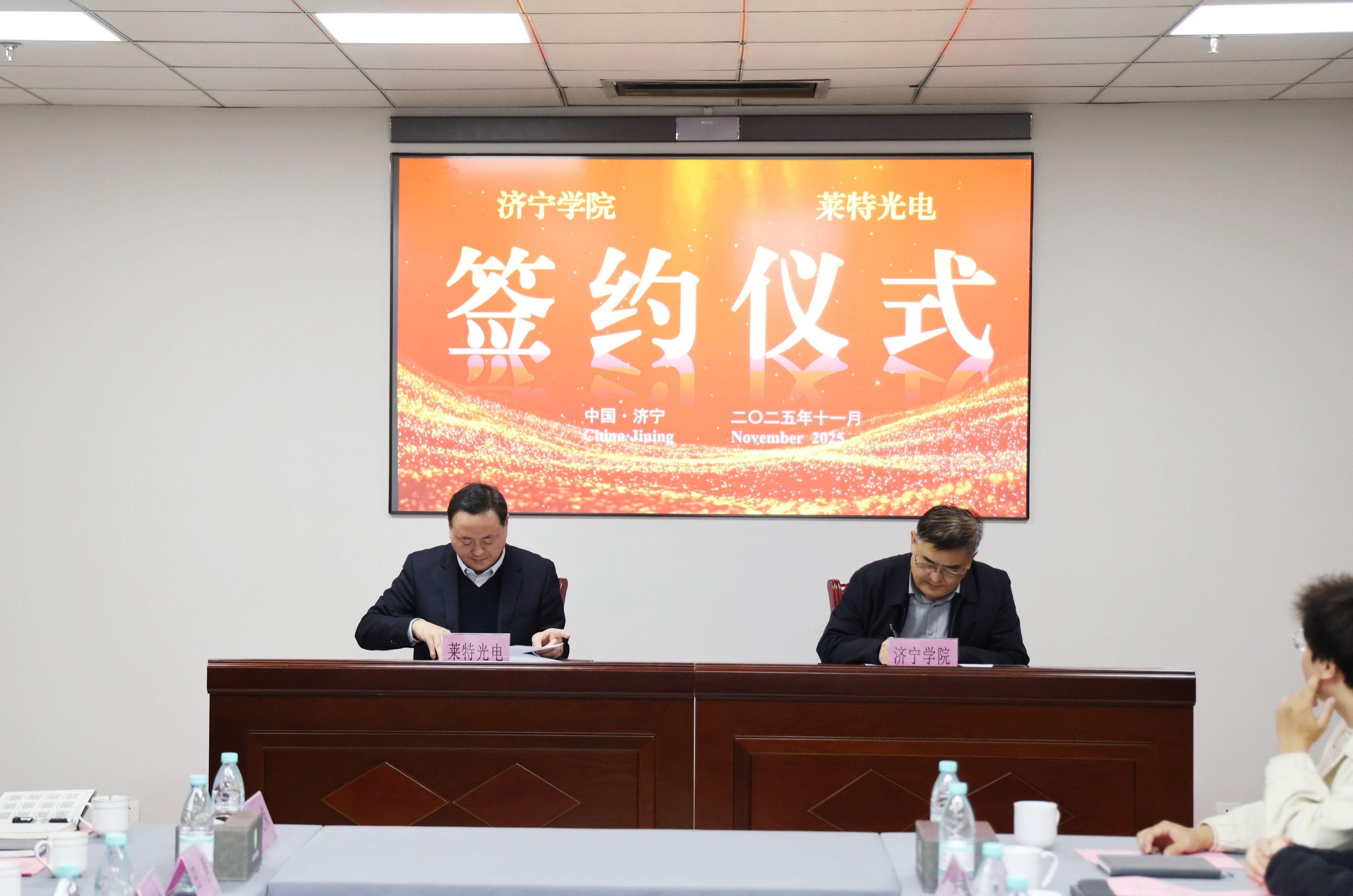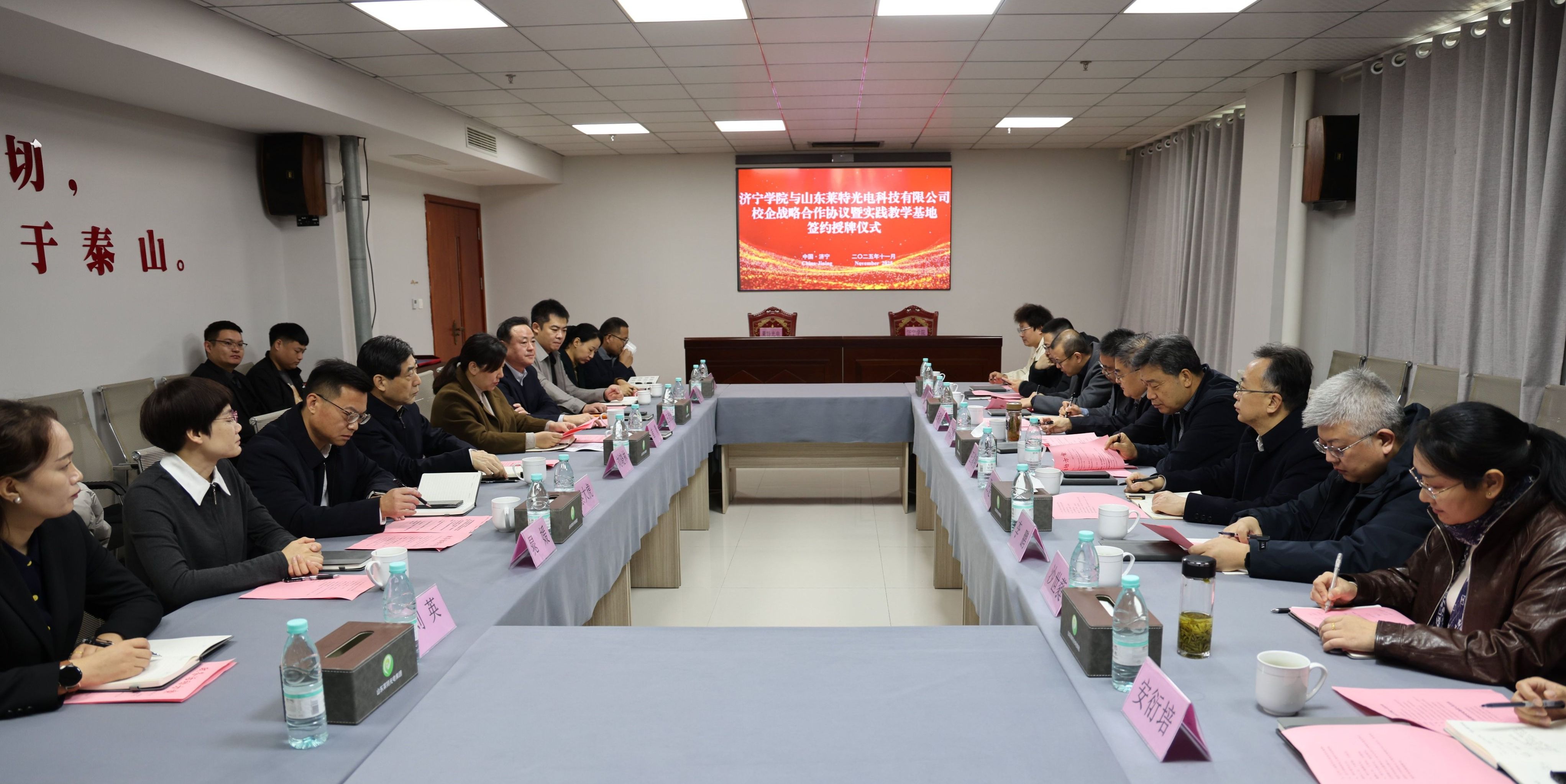 11月17日上午,学校党委副书记、校长王清明率队赴济宁经济开发区调研并与山东莱特光电集团签署校企战略合作协议。学校党委副书记丰家雷,经开区党工委书记、管委会主任刘晓林,党工委副书记崔青,创新创业服务中心主任蔡大虎,山东莱特光电集团董事长王者光、总经理赵培帅,学校合作发展办公室、物理与电子工程学院、计算机科学与工程学院、机电工程学院、资源环境与安全工程学院负责人参加活动。