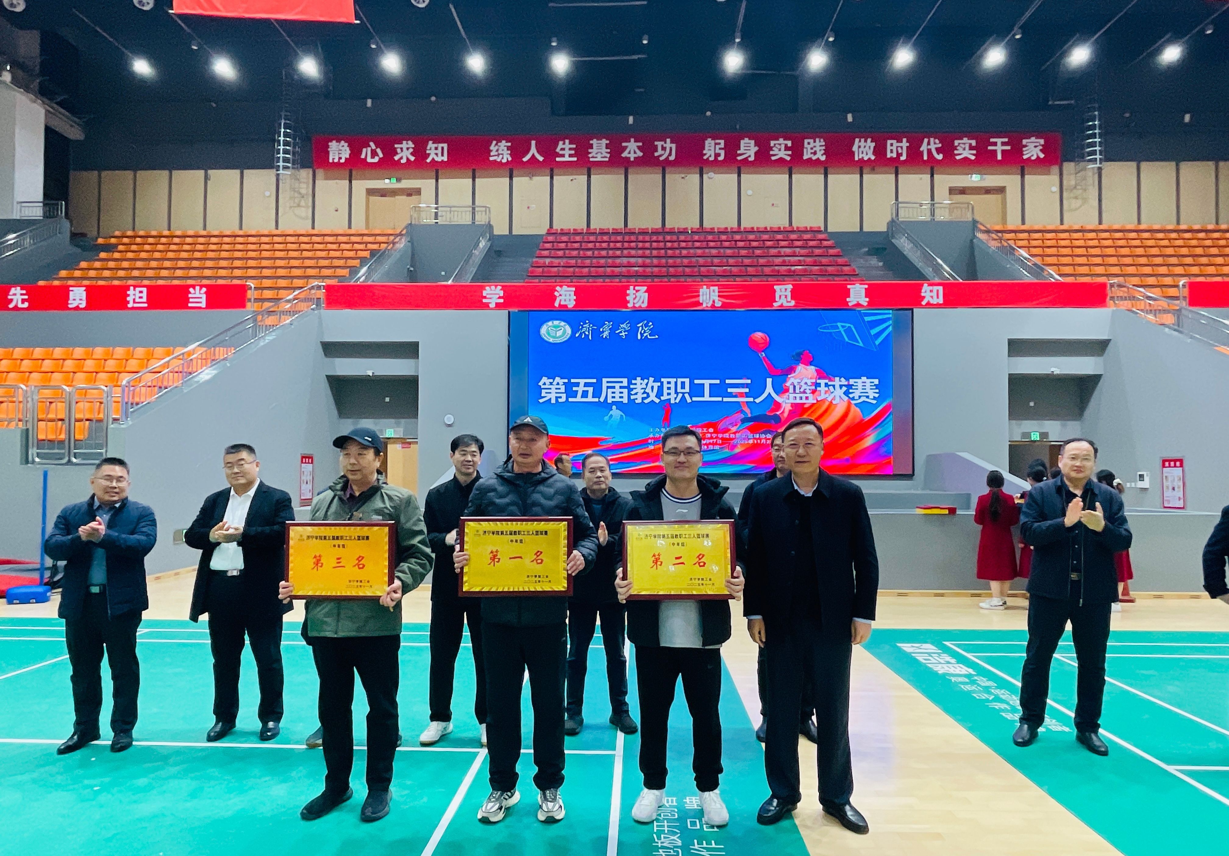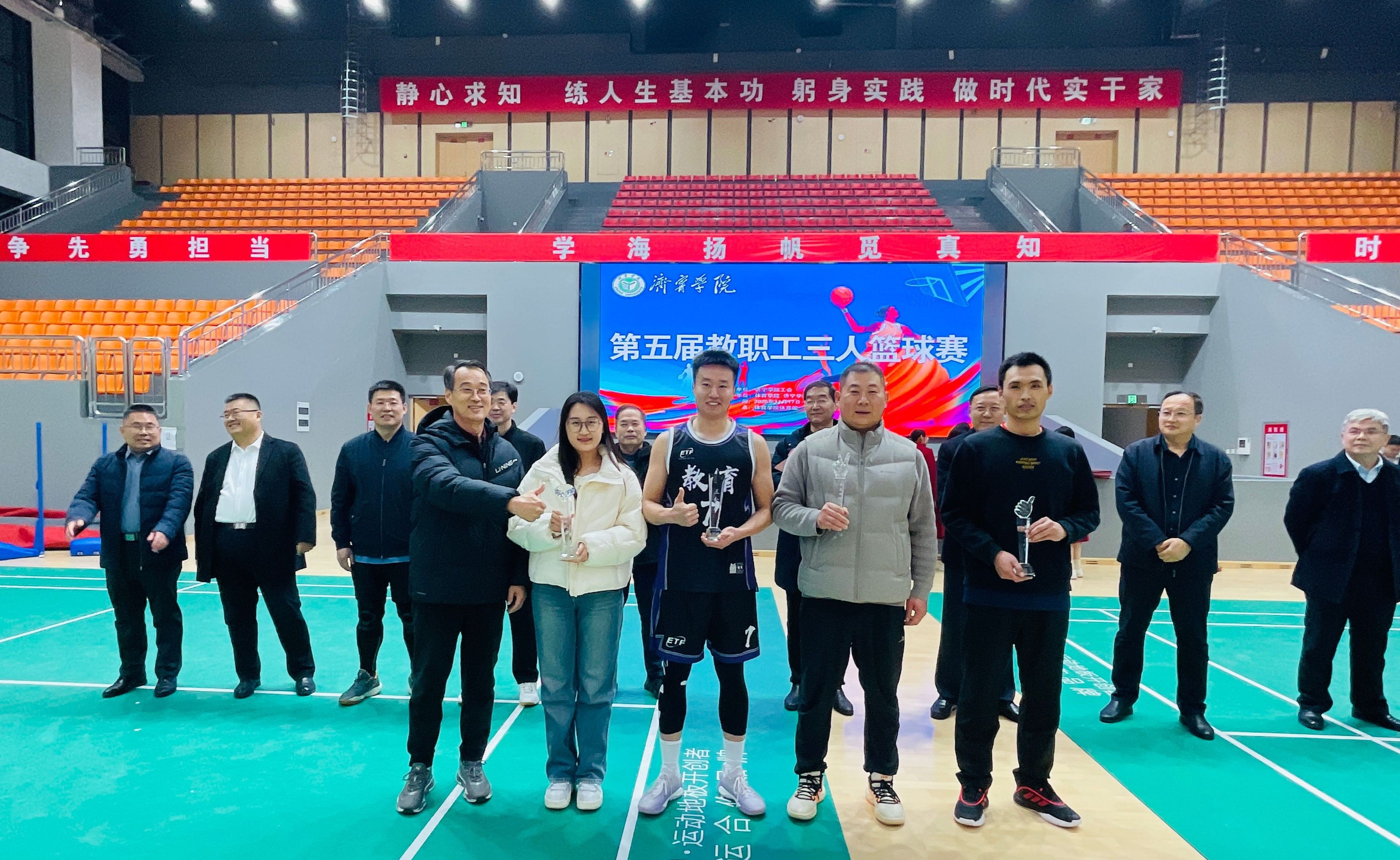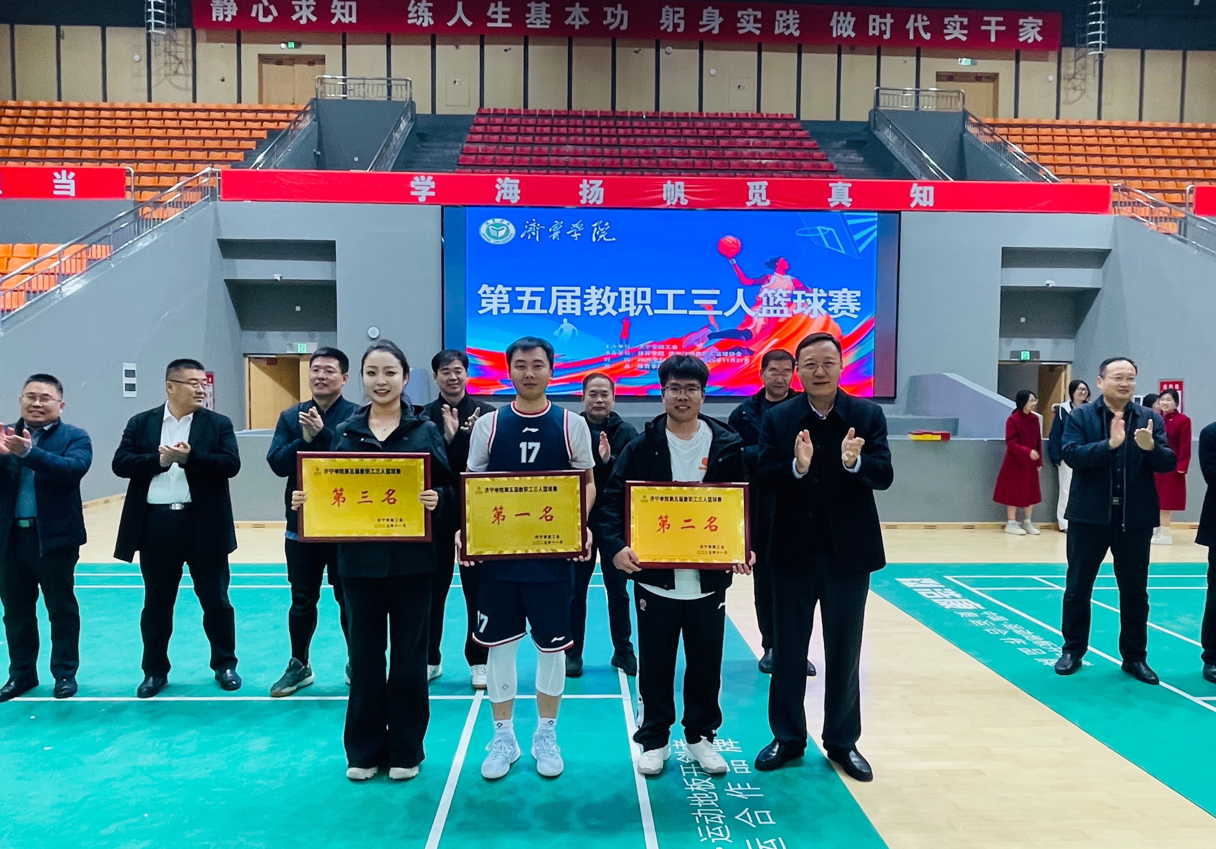 本次赛事于11月17日开幕,校长王清明出席开幕式并为比赛开球。赛事得到全校教职工的积极响应与广泛参与,共有25支代表队、212名运动员同台竞技,赛场之上亮点纷呈。参赛教职工们秉持“友谊第一,比赛第二” 的体育精神,化身活力满满的运动健儿,以饱满的热情、昂扬的斗志投入每一场赛事。巧妙默契的团队传球、精准果断的远投得分、迅捷利落的抢断反击、坚韧顽强的卡位防守,每一个精彩瞬间都展现出教职工们精湛的运动技艺与协作共赢的团队风采,现场观众的欢呼声、加油声此起彼伏,充分彰显了“活力济园、健康济园”的校园氛围。