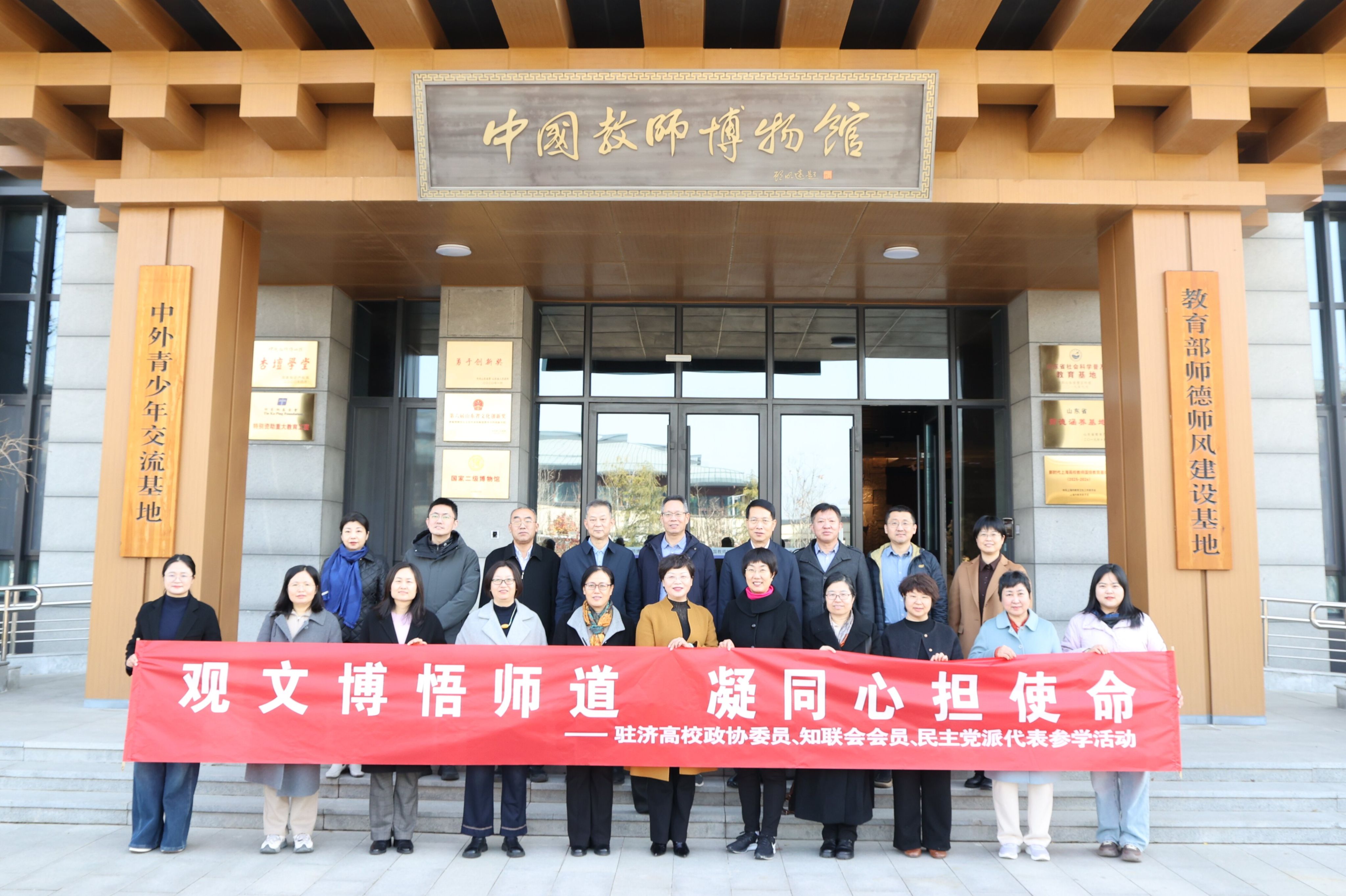 为深入学习贯彻党的二十届四中全会精神,进一步凝聚共识,汇聚合力,11月29日,由我校知联会发起,曲阜师范大学知联会、济宁医学院知联会共同参与的“观文博悟师道 凝同心担使命”主题参学活动在曲阜师范大学举行。除三校知联会会员外,欧美同学会会员及济宁市政协委员代表也参加了活动。