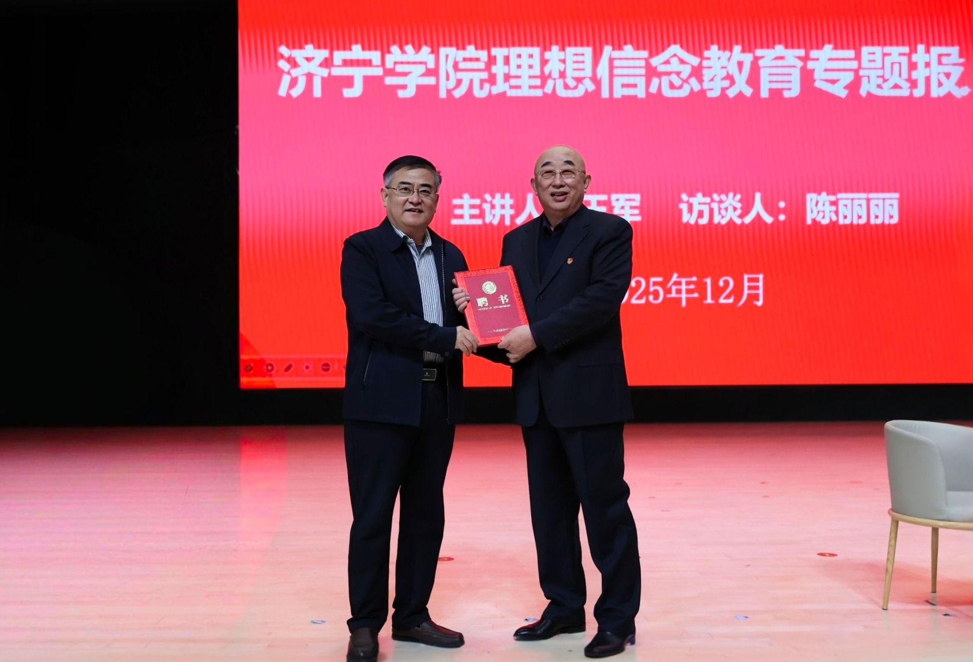 12月2日上午,学校邀请中共一大代表、山东党组织的缔造者和早期领导者王尽美烈士之孙王军同志来校作理想信念教育专题报告。党委副书记丰家雷,党委委员、纪委书记、监察专员孔繁润,党委委员、宣传部部长刘克非出席报告会,各职能部门主要负责人,各二级学院党委书记、副书记、全体辅导员,马克思主义学院思政课教师代表和学生代表参加报告会。报告会由党委委员、副校长赵明主持。此次活动旨在加强师生理想信念教育,弘扬革命精神,激发新时代青年的爱国情怀与使命担当。